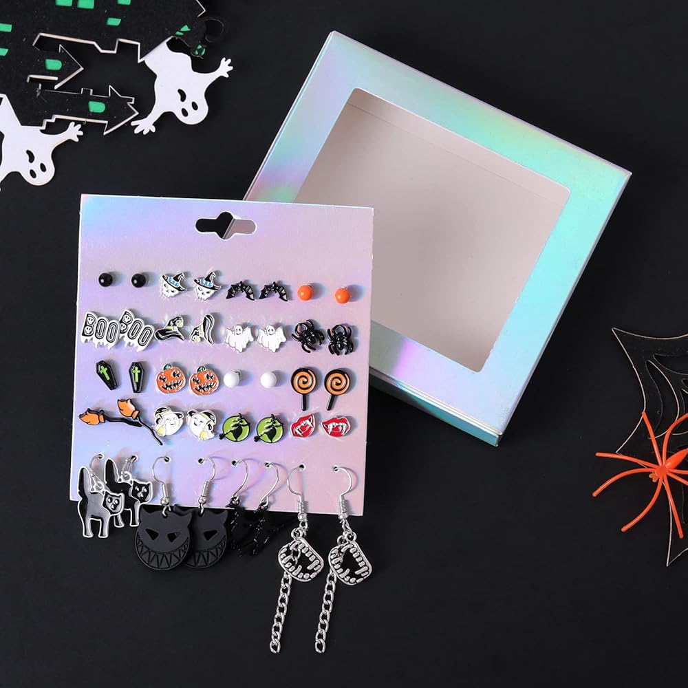 [تغليف متطور]: بطاقة ليزر موحدة وصندوق تغليف، جميل وعصري جدًا في نفس الوقت، لن ترفض النساء من أي عمر العبوة التي ستتوهج. يمكنك مشاركة أقراط الهالوين هذه مع عائلتك أو أصدقائك في عيد الهالوين، أو يمكنك تقديمها كمجموعة هدايا خاصة، سيحب الجميع التصميم المبتكر والتعبئة الجميلة.