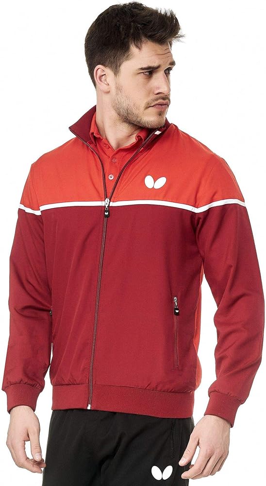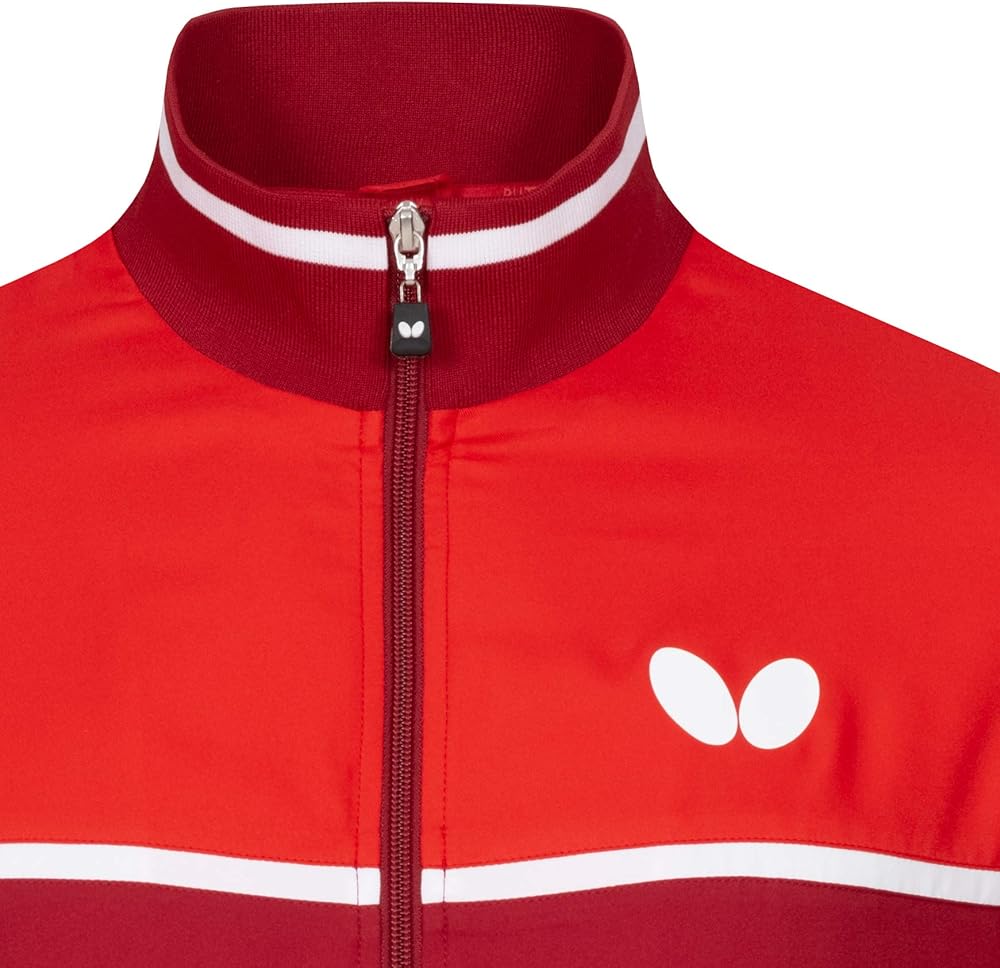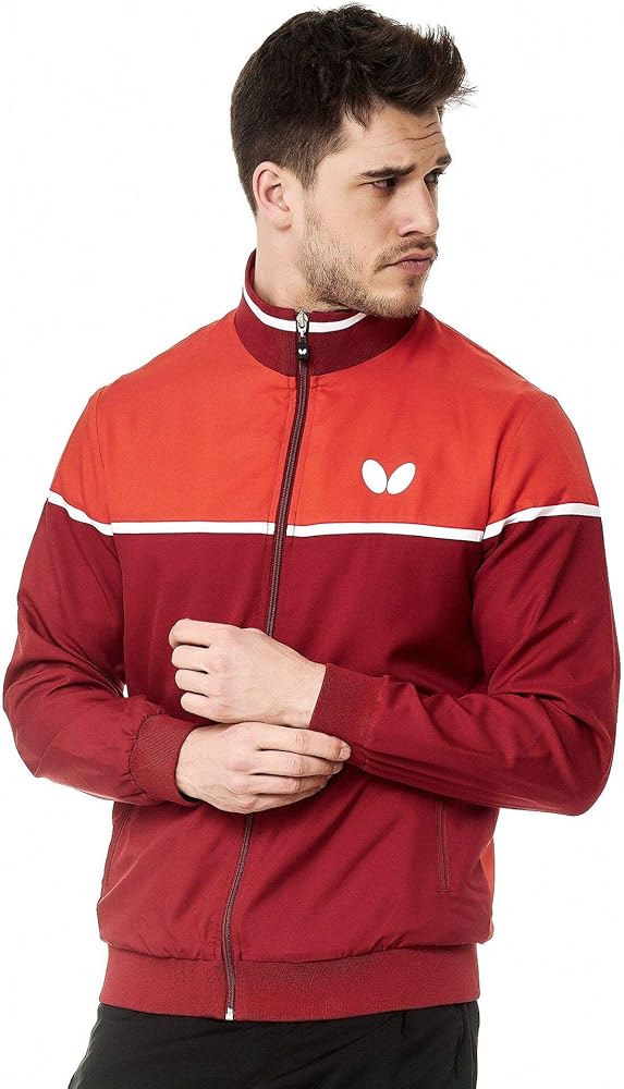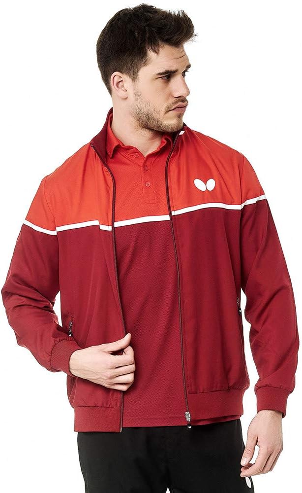 As part of the Butterfly KOSAY apparel collection, the Kosay tracksuit is the perfect choice for clubs and teams. The warm-up suit features a classic design, modern colors and a neutral fit for men or women. The soft, comfortable stretch, skin-friendly material provides breathability and functional support during sports activities. The Kosay track jacket features a full zip up closure, zipper side pockets, collar, elastic cuffs and waist for a sporty appearance. The Kosay track pants feature an elastic waistband, elastic ankle cuffs with zippers for easy removal, and zipper side pockets. The Kosay tracksuit's 3065 WR, 100% polyester, material provides a soft, comfortable stretch tracksuit with breathability and functional support during breaks from workouts, matches and other sport activities. A soft touch and high elasticity are the main characteristics of 3065 WR fiber. Butterfly table tennis textiles using 3065 WR are comfortable to wear, skin-friendly and breathable. Compliment the style of the Kosay tracksuit with a shirt or ladies' shirt from the Butterfly KOSAY apparel collection. For men or women, the Kosay tracksuit is athletic warm-up for training, jogging, workouts, table tennis and other sport and leisure activities. Jacket and pants sold separately.