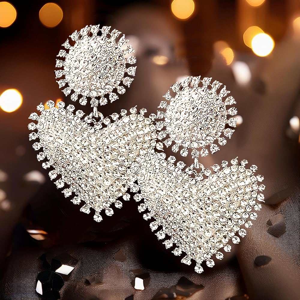 Glamorous Statement Earrings: These eye-catching heart shapped earrings feature a stunning cluster of sparkling crystal, and are perfect for adding a touch of elegance to any outfit.
