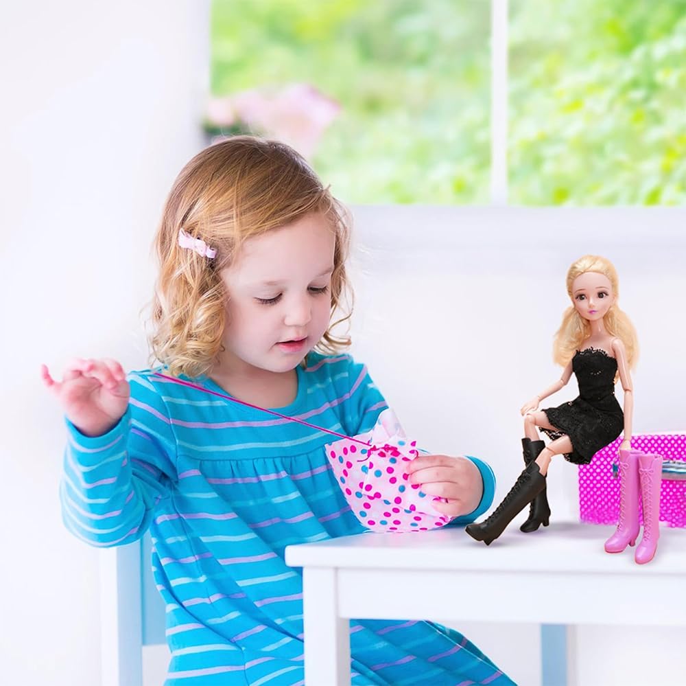 • متعة DIY: مع مجموعة متنوعة من الأحذية المختلفة، يمكنك تلبيس الدمى وفقًا لتفضيلاتك، مما يثري خيالك.