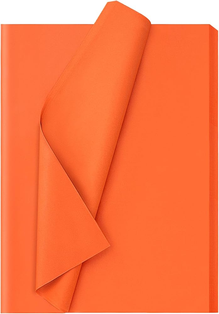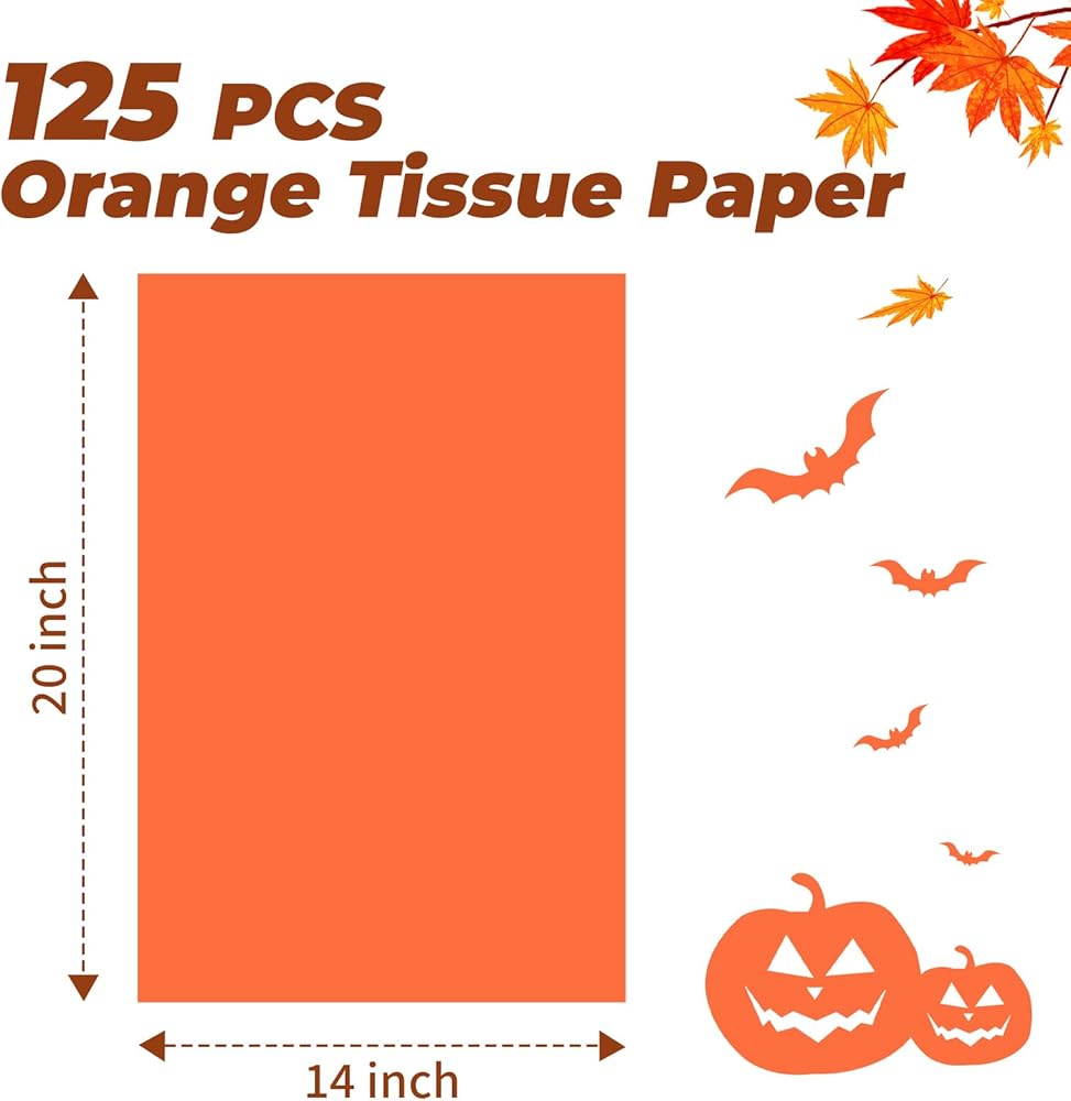 العبوة الاقتصادية: 125 ورقة من مناديل ورقية برتقالية مقاس 14 × 20 بوصة. كافية لتلبية احتياجات تغليف الهدايا الخاصة بك في الخريف، والهالوين، وعيد الشكر، والمهرجانات اليومية، وأعياد الميلاد، لتعزيز جو الاحتفالات.