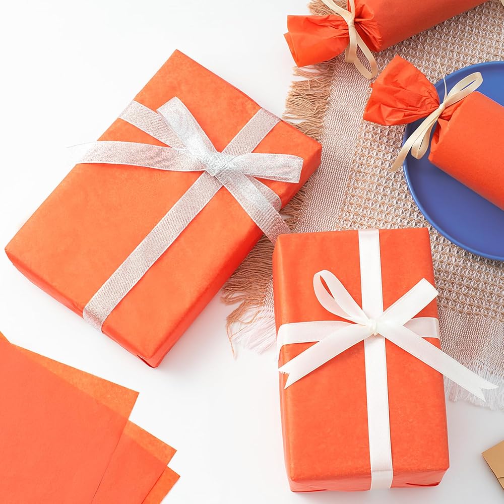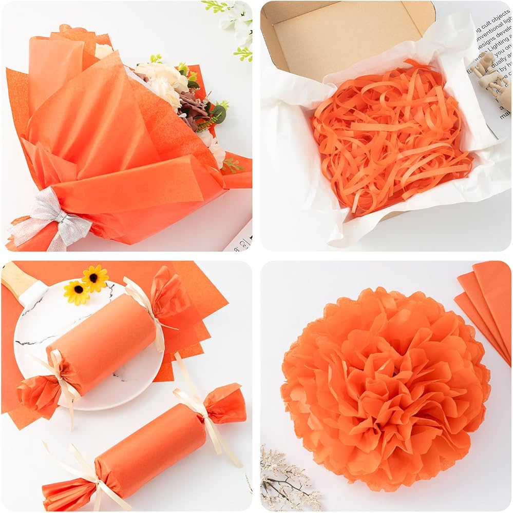 حجم كبير: يبلغ حجم كل مناديل ورقية برتقالية لحقائب الهدايا 35.56 سم × 50.8 سم، كبيرة بما يكفي لتوفير تغطية واسعة لمختلف أغلفة الهدايا والأشياء التي تصنعها بنفسك.