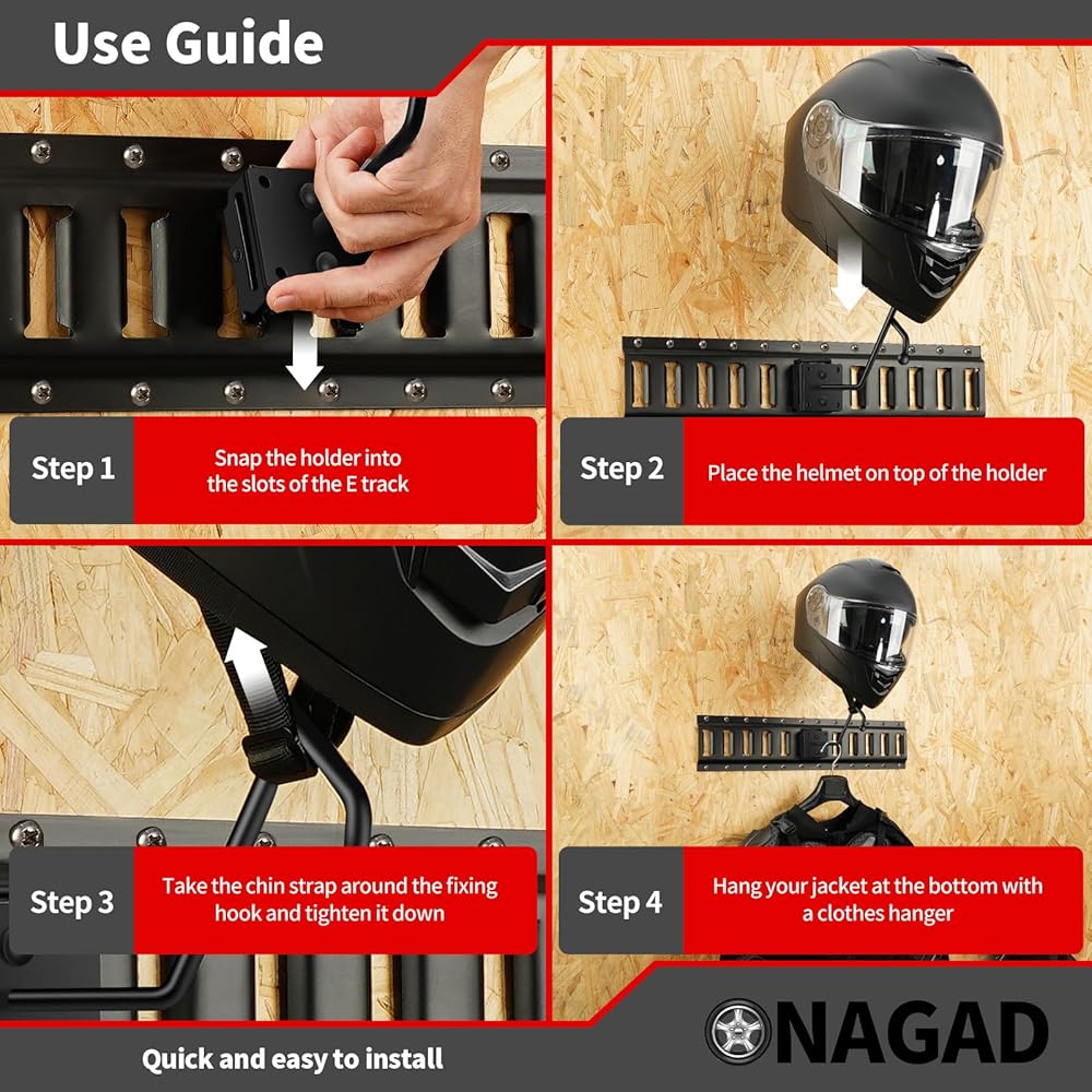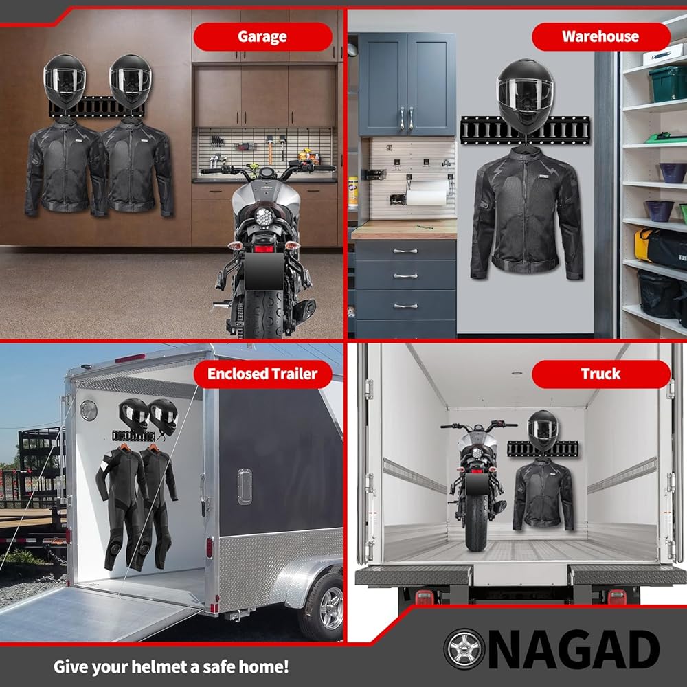 حماية خوذاتك: يمكننا أن نعرض لك حلاً بسيطًا للغاية! مع حامل خوذة الدراجة النارية على الحائط، يمكنك تخزين خوذات الدراجات النارية ذات الوجه المفتوح، وخوذات الوجه الكامل، وخوذات الدراجات، وخوذات الأمان، وخوذات كرة القدم وخوذات البيسبول. لا يمكن لحامل خوذة الدراجة النارية أن يحمي خوذة الدراجة الترابية الخاصة بك من الخدش أو التدمير فحسب، بل يمكنه أيضًا تعليق المعاطف والسترات والملابس الرياضية. يمكنك زيادة مساحة المقطورة الخاصة بك مع الحفاظ على مكان تخزين آمن ومنظم.