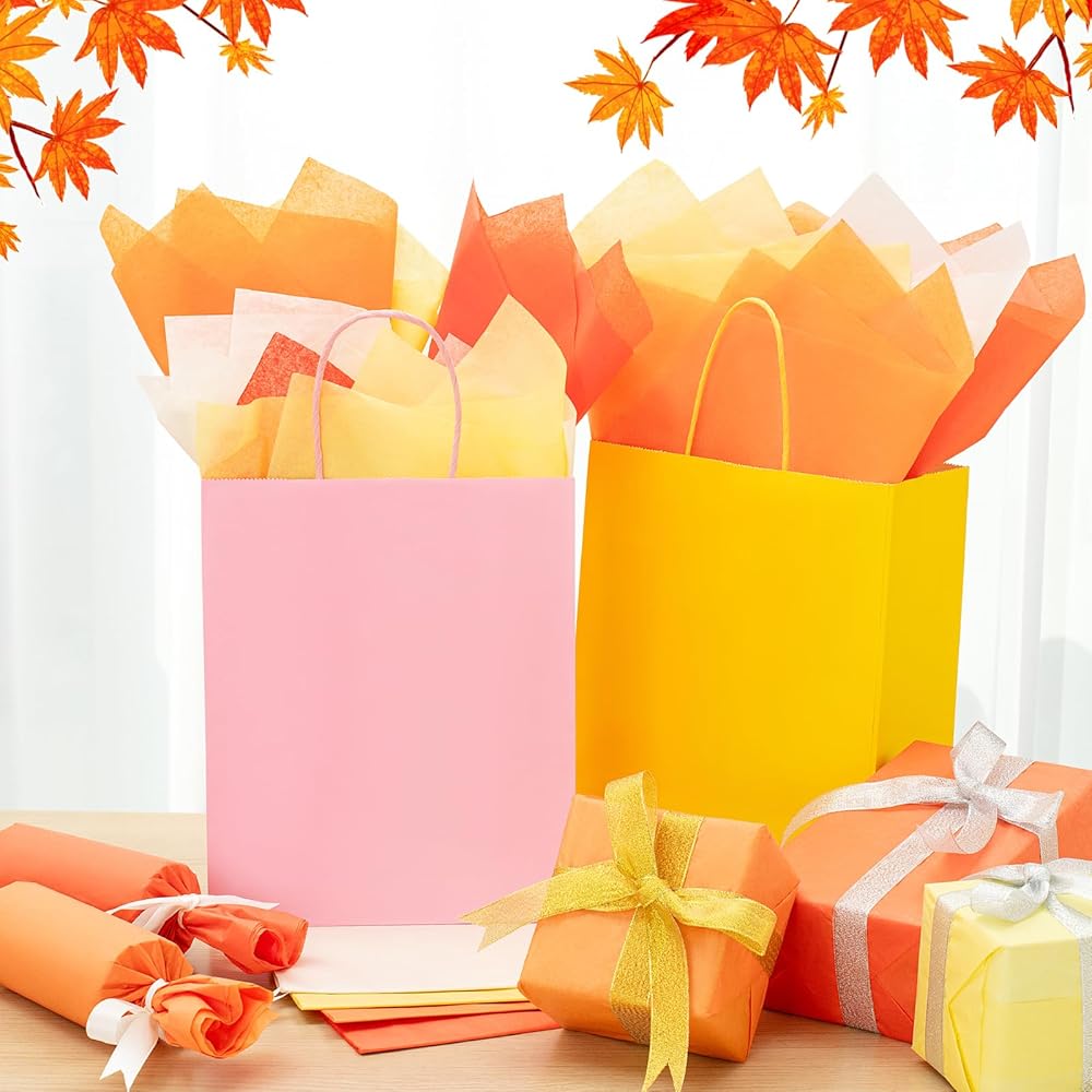 حجم كبير: يبلغ حجم كل منديل ورقي برتقالي لحقائب الهدايا 35.56 سم × 50.8 سم، وهو كبير بما يكفي لتوفير تغطية واسعة لتغليف الهدايا المختلفة والعديد من الأشياء التي يمكنك صنعها بنفسك.