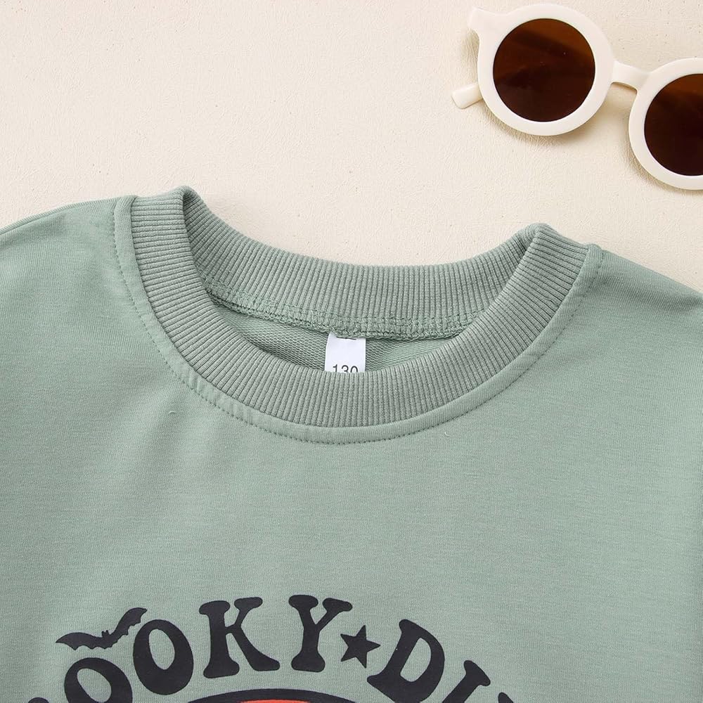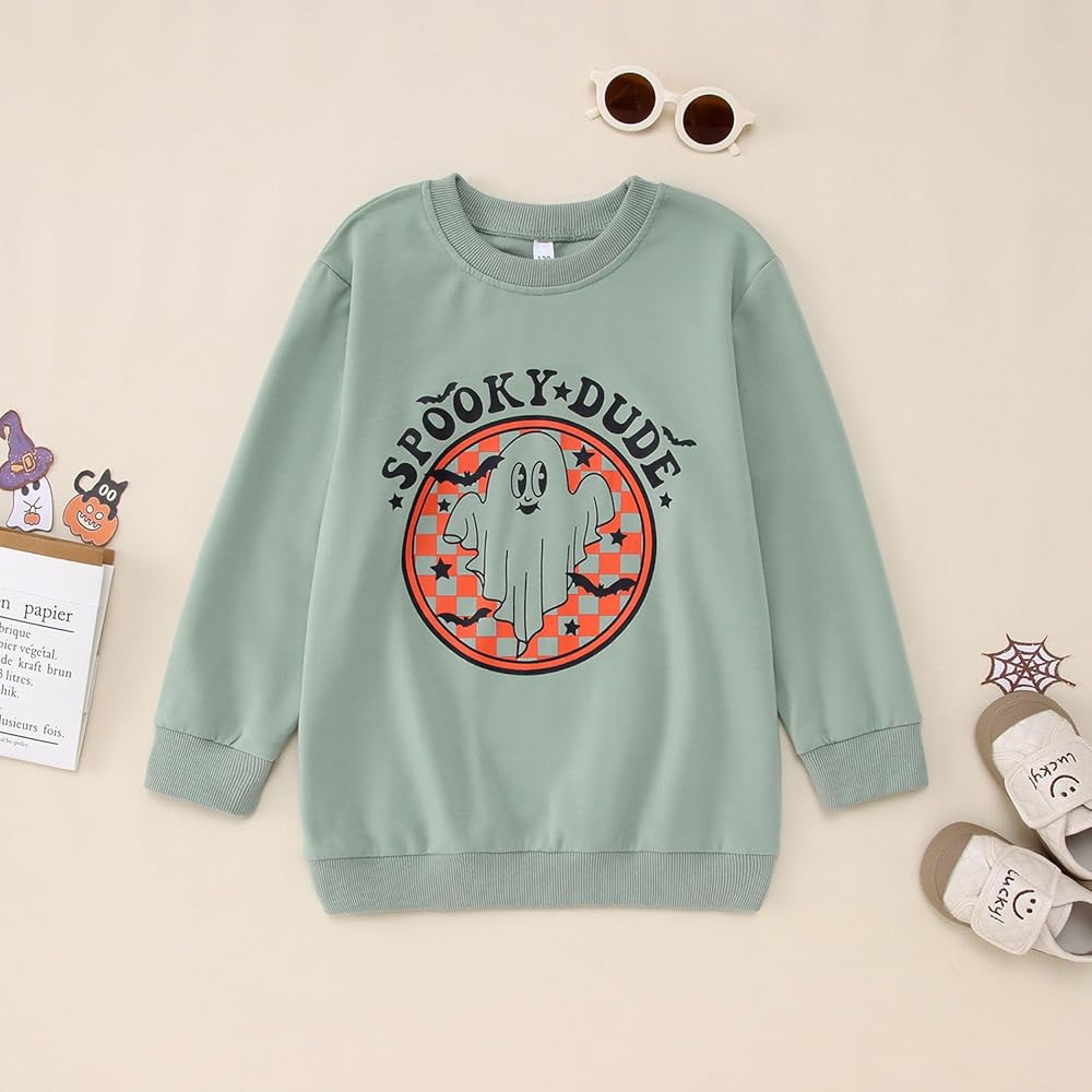 - 👻المميزات---سويت شيرت شبح الهالوين للأطفال، بلوفر للهالوين للفتيات والأولاد، رسم لطيف لشبح الخفاش، قميص مطبوع عليه حروف مخيفة مضحكة، سويت شيرت برقبة دائرية بأكمام طويلة. سويت شيرت مرح للأطفال للهالوين، سويت شيرت شبح مخيف للفتيات والأولاد، رائع وأنيق.