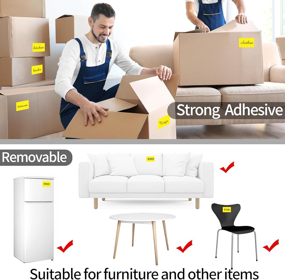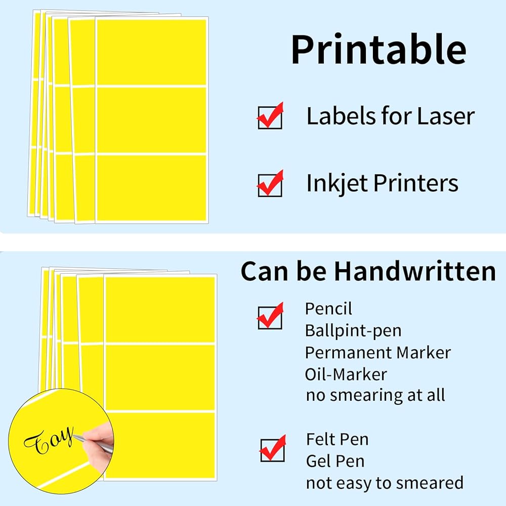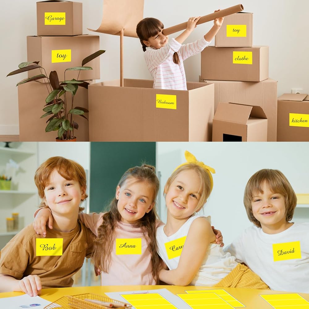 ملصقات ملصقات ملونة قابلة للإزالة من STARLIBOO، ملصقات متحركة مستطيلة مقاس 3 × 5 بوصة، مقاومة للماء/الزيت/التمزق ولا تترك بقايا ملصقات كبيرة لرموز الألوان لصناديق التخزين والمكتب والمدرسة - أصفر