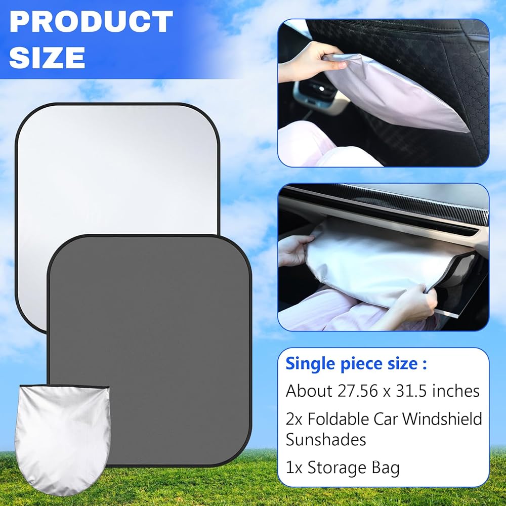 • Suitable Size: our car windshield sun shade measures approximately 27.56 x 31.5 inches/ 70 x 80 cm, suitable for most windshields of sedans and SUV, etc. These awnings can be well installed on the windshield to protect your car interior from harmful UV rays and overheating