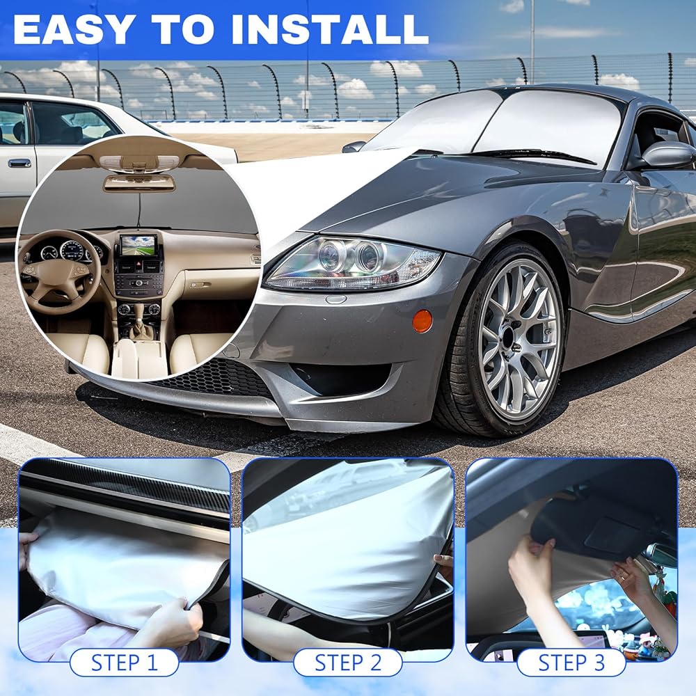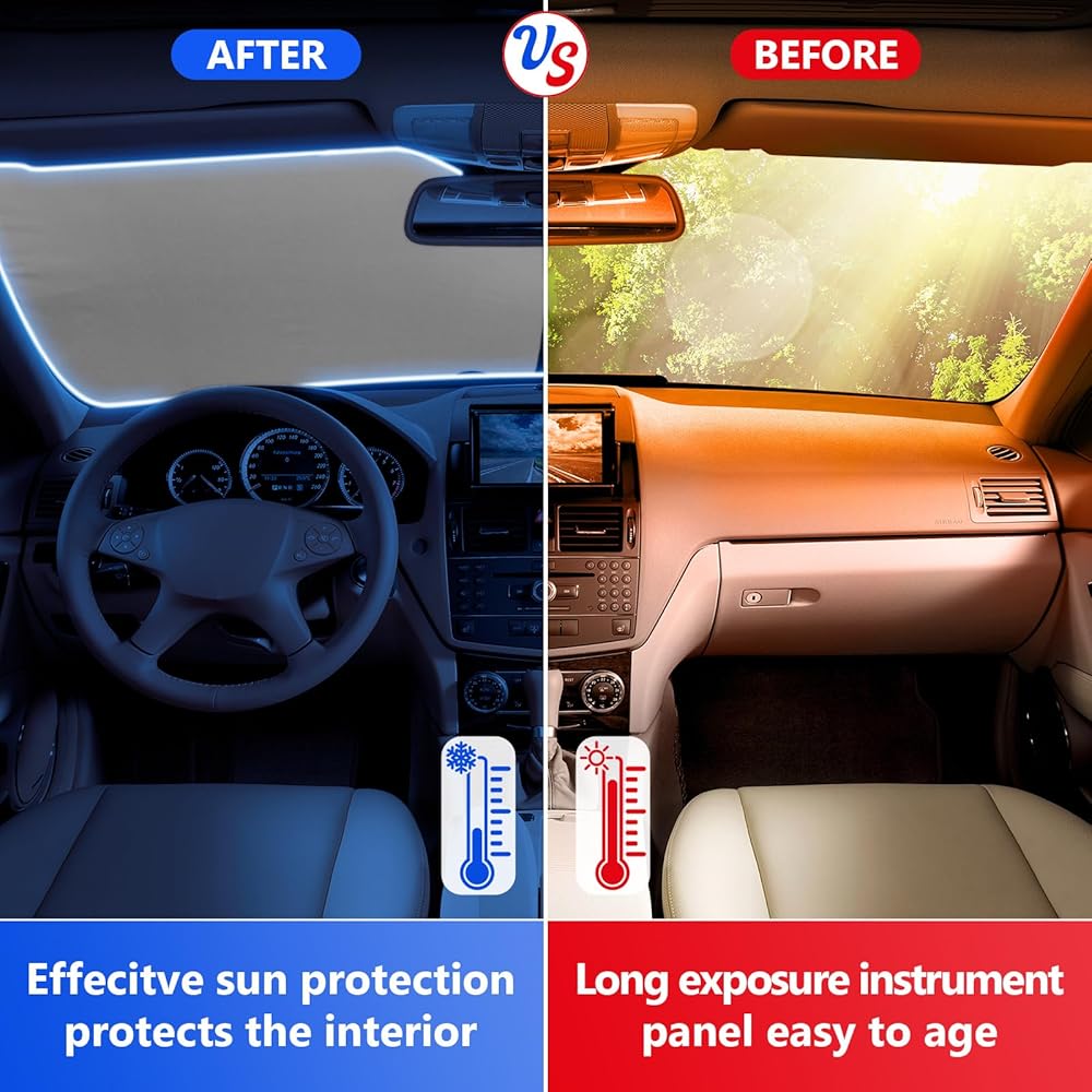 In the hot summer, make the atmosphere in your car cooler and more comfortable. Our car windshield shades not only block harmful UV rays, they also significantly reduce heat and improve your driving comfort