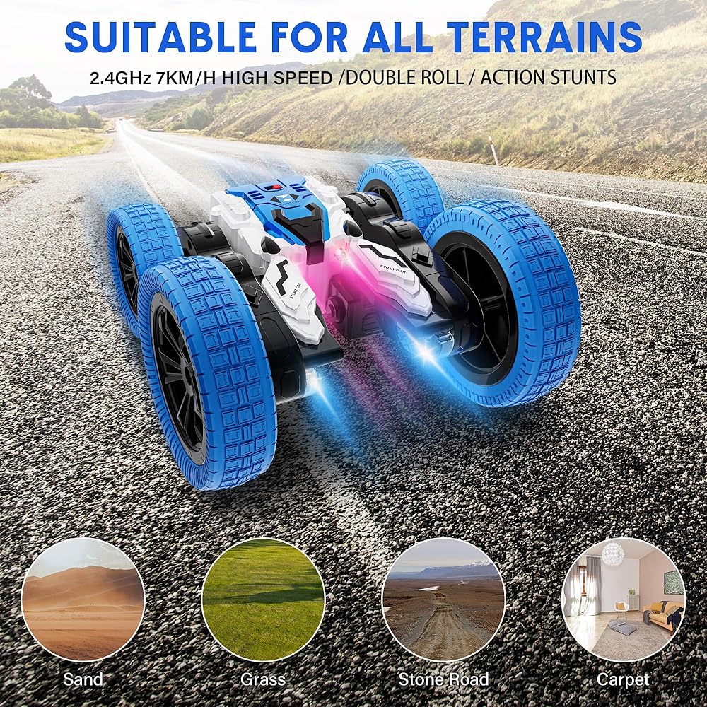 Remote Control Car, Double Sided RC Car, 4WD Off-Road Stunt Car with 360° Flips, 2.4Ghz Indoor Outdoor All Terrain Rechargeable Electric Toy Cars Gifts for Boys Kids 3 4 5 6 7 8 9 10 11 12 Year Old