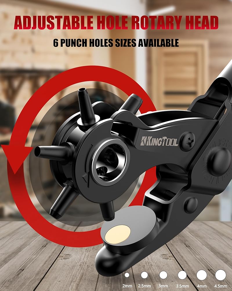 استخدامات متعددة: 6 أحجام فتحات: 2 مم، 2.5 مم، 3 مم، 3.5 مم، 4 مم، 4.5 مم رائعة للحرف اليدوية والهواة والصناعات اليدوية. تتيح لوحة التثقيب الكبيرة جدًا ثباتًا أفضل ومزيدًا من التحكم عند التثقيب عبر الجلد والبلاستيك والقماش والكرتون والمطاط والبولي يوريثين والأقمشة والحرير والعديد من المواد الأخرى.