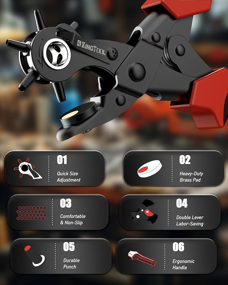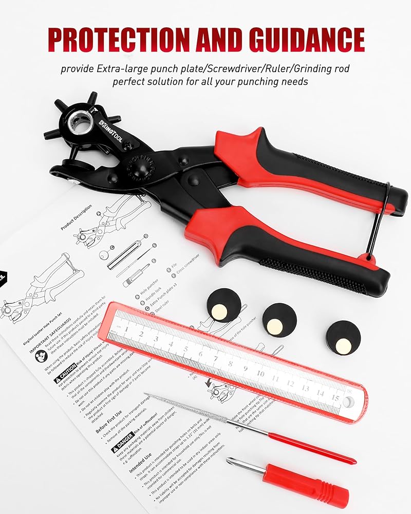 أفضل المكافآت: ضمان استرداد الأموال لمدة 90 يومًا دون طرح أسئلة وضمان المنتج لمدة 3 سنوات. ضمان الرضا بنسبة 100%. اشتري بثقة! تشتمل سلسلة ثقب الجلد على: 4 ألواح ثقب كبيرة للغاية مع مفك براغي، وكتاب إلكتروني يحتوي على نصائح وحيل حول كيفية الحصول على أفضل النتائج باستخدام أداة ثقب الجلد الجديدة، وأداة ثقب الجلد الجديدة، ومسطرة وأداة المخرز.
