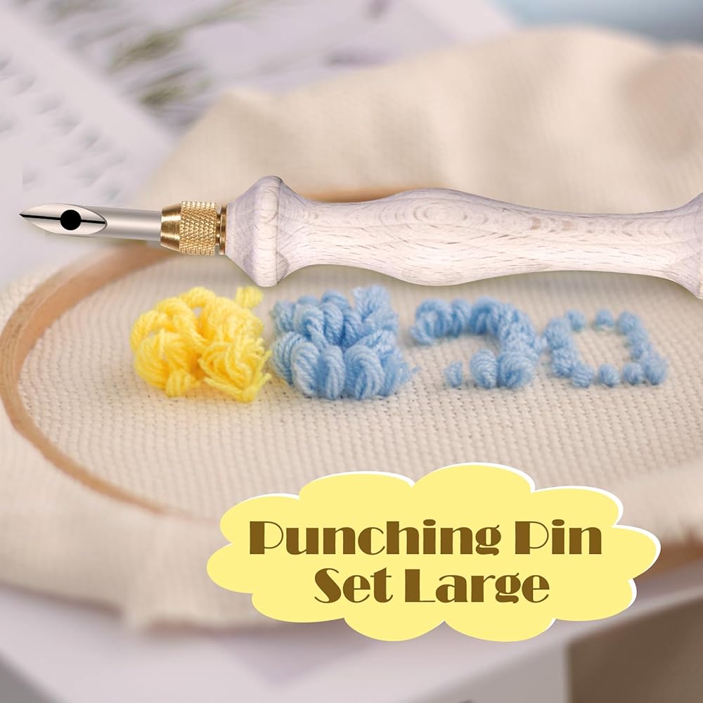• 【Premium Material】Punch needle kit all the punches are made of stainless steel and the handle is partially made of beech wood, ergonomically designed allowing you to hold the punch in an easier way. Reduce the friction between the needle and the cloth. Note: Pictures are for reference only. There is no pattern on the cloth, you need to use our marker to design the pattern, and then punch the holes, the packaging includes no embroidery thread.