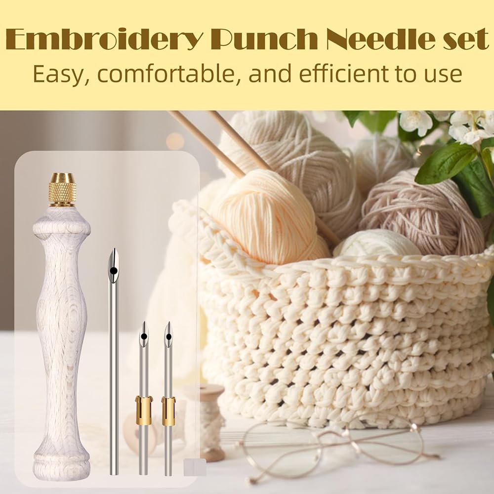 【Punch Needle Kit】Includes 1 pen holder, 3 needles and lead wire.You can experience a variety of creative punch needle.The punch needle diameter is 5mm, 3.5mm,2.5mm, respectively.
