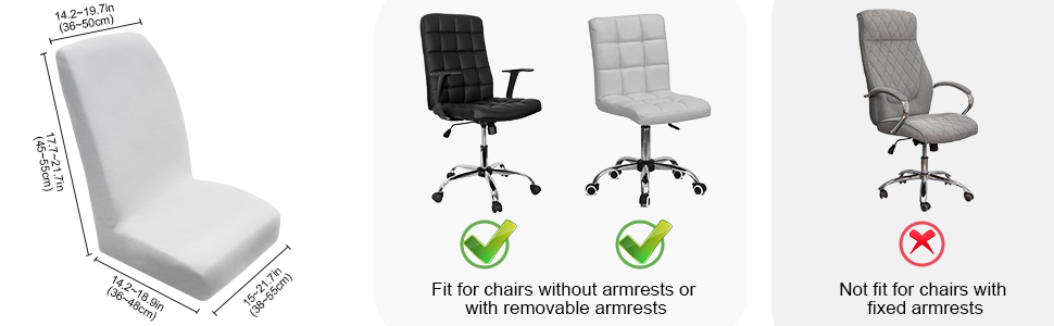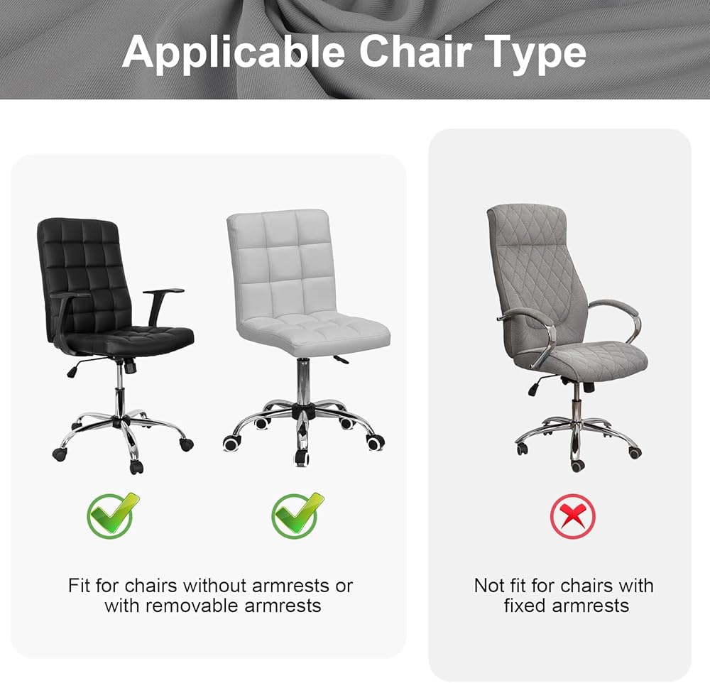 سهولة التركيب: ما عليك سوى وضع الغطاء على كرسيك بدون ذراعين ثم وضع القماش الزائد في الفجوة بين الظهر ووسادة المقعد