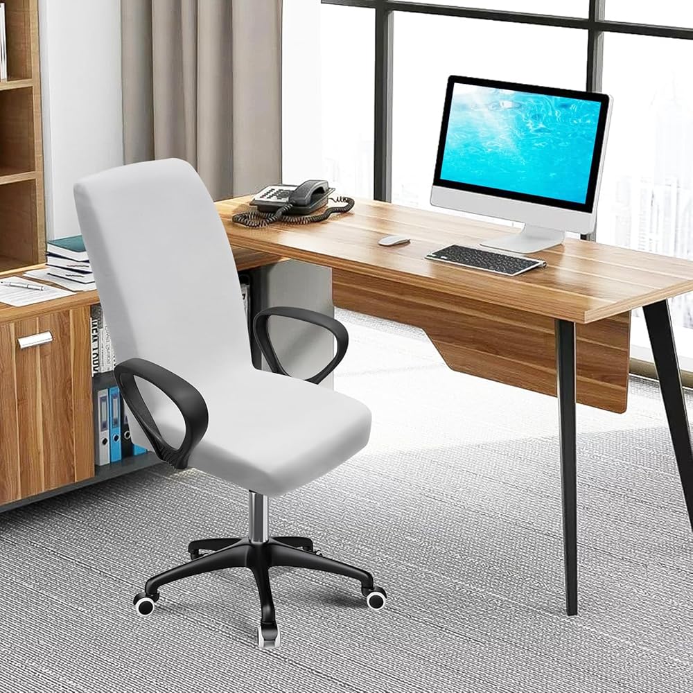 حماية مثالية: غطاء مقعد الكمبيوتر المصنوع من قماش مطاطي وشريط مطاطي يناسب تمامًا ويحمي كرسيك من البقع والأوساخ وعضات الحيوانات الأليفة والشعر.