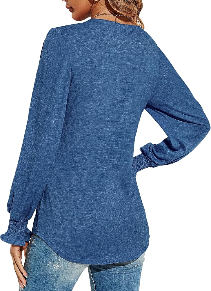 • فتحة رقبة على شكل حرف V وأكمام منتفخة لطيفة/ مقاس فضفاض / مقاس مريح / بلوزات للنساء / قمصان للرضاعة النسائية / قمصان متماسكة غير رسمية