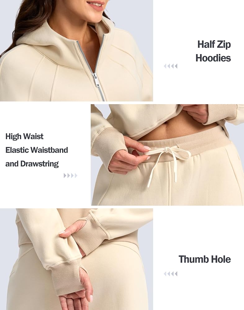 ملابس حديقة جميلة مكونة من قطعتين، بلوفر نصف سحاب، بدلات رياضية بغطاء للرأس من الصوف للنساء، مجموعات بدلات رياضية، أطقم صالة للنساء، ملابس الخريف، أزياء الخريف، مجموعات الركض، مجموعات متطابقة، بدلة رياضية للسيدات طقم مكون من قطعتين.