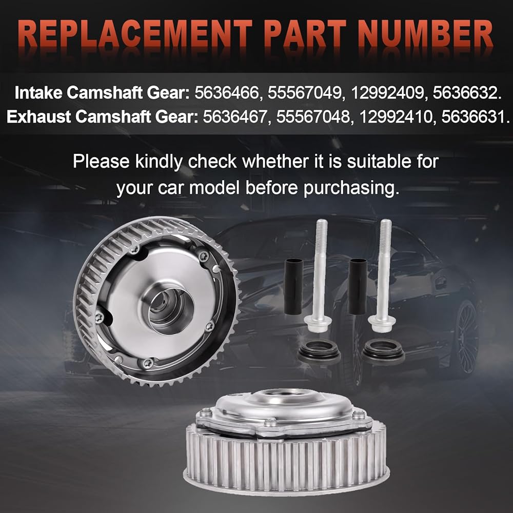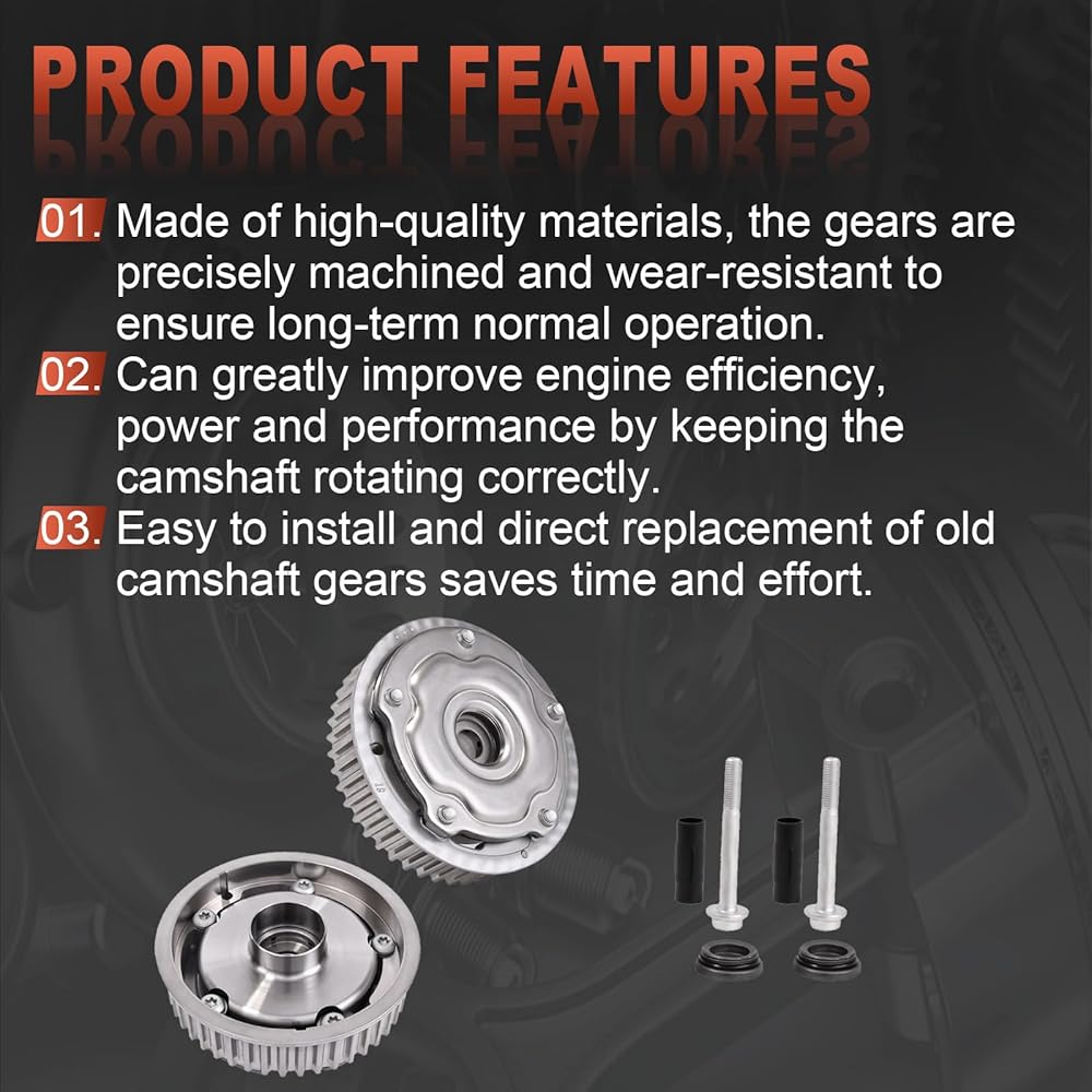 تركيب تروس عمود الحدبات: 1. قم بتدوير العمود المرفقي حتى تواجه علامة التوقيت موضع الساعة 6، ويكون مفتاح المفتاح في موضع الساعة 11. 2. قم بإزالة تروس عمود الكامات الخاصة بالمصنع، واستبدلها بمجموعة التروس الجديدة القابلة للتعديل. 3. مسامير التعديل للسماح للمحور المركزي للعتاد بالتدوير. يوصى بالتركيب الاحترافي
