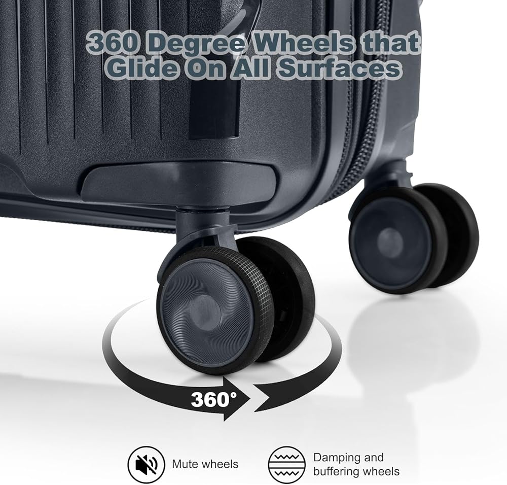 Effortless maneuverability with spinner wheels: Say goodbye to the hassle of dragging heavy bags behind you. The spinner wheels on this luggage set allow for smooth and easy movement in any direction. Whether you're navigating through crowded airports or busy streets, these wheels make your journey a breeze.