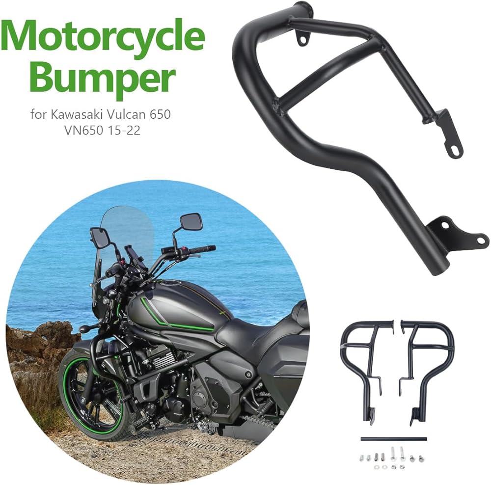 قضبان التصادم لمحرك الطريق السريع للدراجات النارية، واقيات خزان الغاز المتساقطة للإطار متوافقة مع Kawasaki Vulcan S 650 VN650 EN650 2015-2022 (أسود غير لامع)
