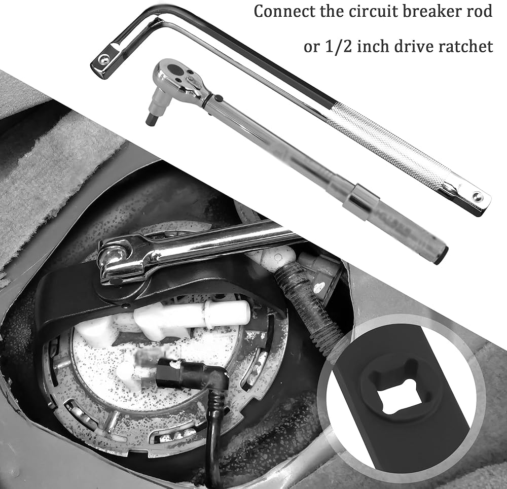 Say goodbye to the days of struggling with complex and strenuous disassembly methods. Our fuel pump lock ring removal tool simplifies the process by allowing you to remove the lock ring with ease. Pair it with a standard 1/2-inch drive ratchet wrench or breaker bar, turn counter-clockwise, and watch as the ring effortlessly detaches. This streamlined method saves you time and energy, keeping that your maintenance tasks are carried out efficiently