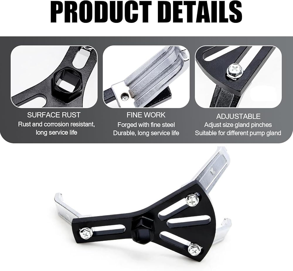 Adjustable: This 3-claw wrench has a large adjustment range (4.52"-7.28"). You can adjust the clamping feet according to the size of the gland. It is suitable for different oil pump glands. It is more convenient to use and is compatible with Mercedes-Benz, BMW, Audi and other vehicles.