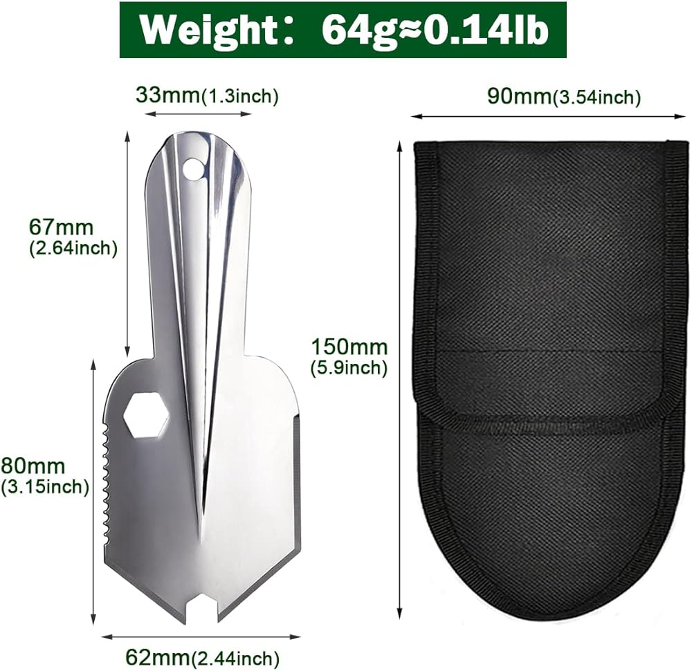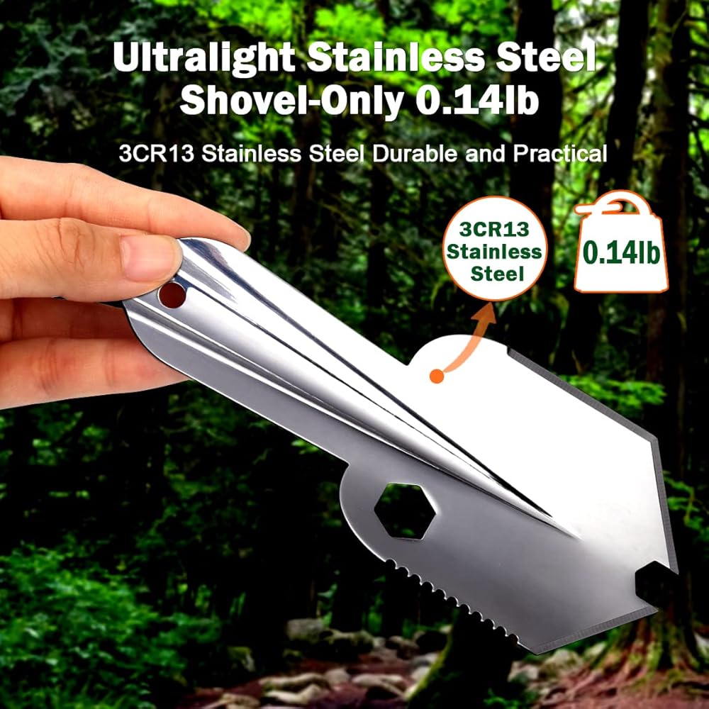 【فقط 0.14 باوند (64 غرام) أساسيات التخييم خفيفة للغاية】- وجود مجرفة خفيفة الوزن عالية الجودة، في متناول اليد عندما تكون في أمس الحاجة إليها أمر لا بد منه. مجارف خفيفة للغاية مصنوعة من الستانلس ستيل 3CR13 عالي الجودة، مقاومة للصدأ والتآكل والكسر حتى في الظروف الرطبة، مع مقاومة عالية للتآكل. (هذه مجرفة صغيرة خفيفة وصلبة ومريحة. يرجى الانتباه إلى ما إذا كان المقاس مناسبًا لاستخدامك)
