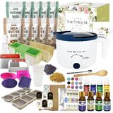 ما الذي ستحصل عليه: تشتمل مجموعة صنع الصابون على: آلة ذوبان الصابون الكهربائية × 1، ملعقة خشبية وملعقة فولاذية × كل قاعدة صابون أبيض 1250 جرام × 4، قاعدة صابون شفافة 250 جرام × 4، أصباغ سائلة × 8، زيوت عطرية × 8، قالب سيليكون × 2، قالب رغيف × 1، صندوق تقطيع × 1، كيس صابون شفاف × 30، كيس صابون ورقي × 20، أغلفة صابون × 10، قطاعة مموجة ومضلعة × 1، عصا تقليب × 5، زجاجة كحول × 1، كوب للاستعمال مرة واحدة × 10، ملصق صابون × 30. كل ما تحتاجه لصنع الصابون متضمن