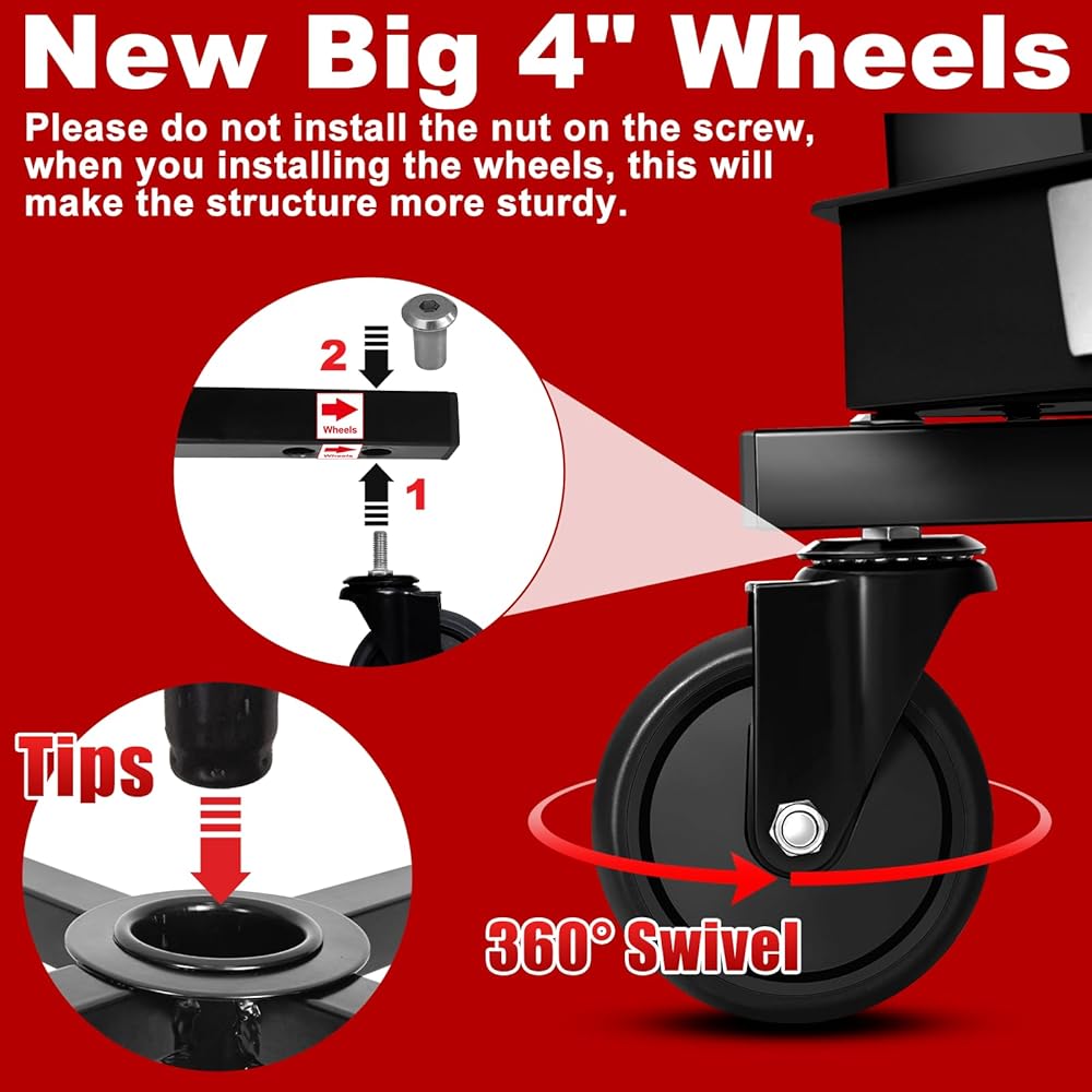 【عجلات كبيرة 4 بوصة】تم تجهيز المقعد الدوار مع دعم الظهر بـ 4 قطع عجلات متحركة 360 درجة يبلغ قطرها 4 بوصات. تعمل العجلات الدوارة بسلاسة على تعزيز الحركة، وسهولة التغلب على الشقوق والحطام على الأرض.