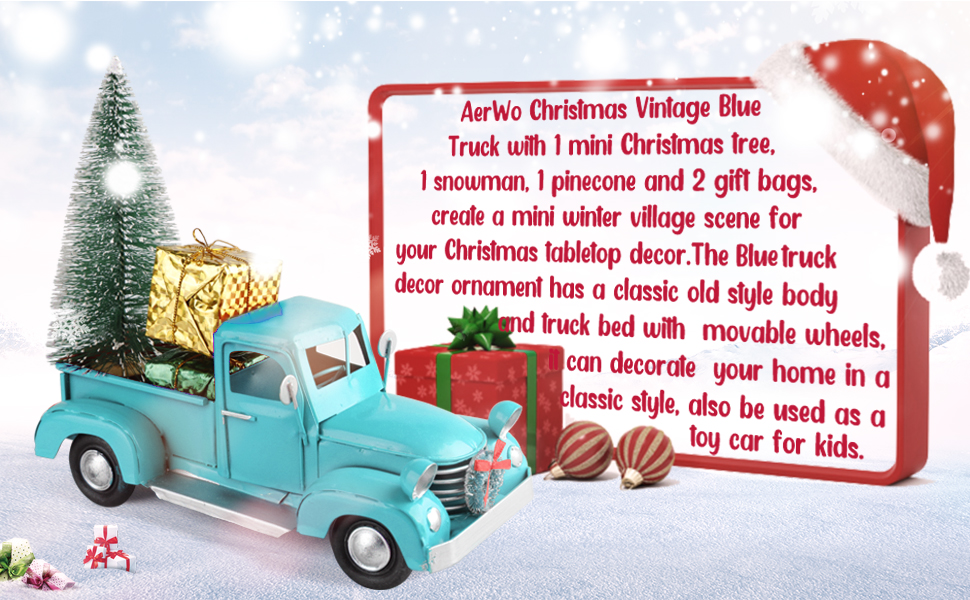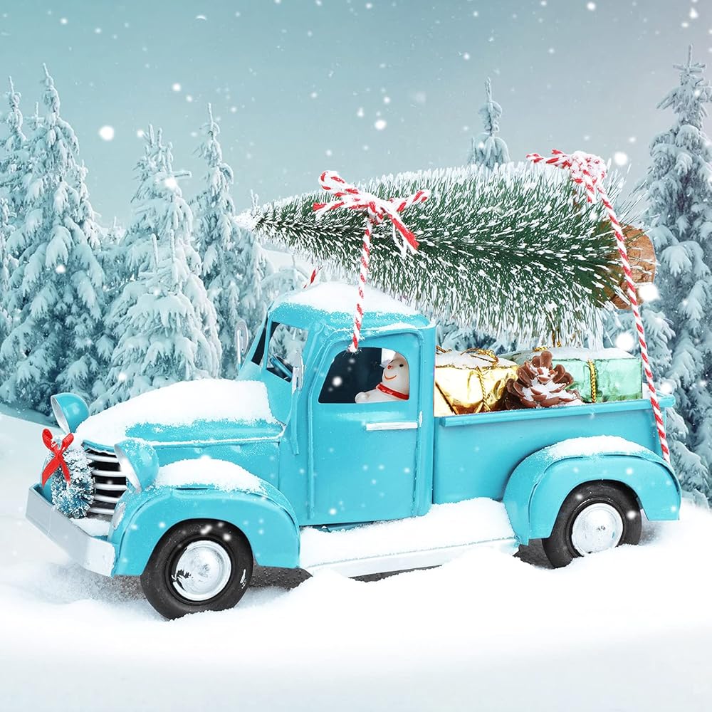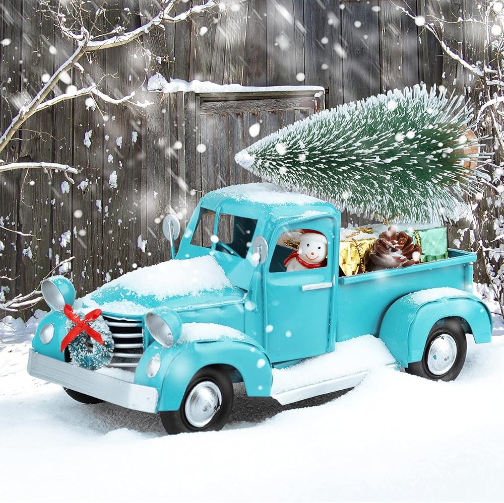 🚗 مجموعة ترقية 2021: الشاحنة المعدنية الزرقاء لبيت المزرعة مع شجرة عيد الميلاد الصغيرة، ورجل ثلج واحد، وكوز صنوبر واحد، و2 كيس هدايا، تخلق مشهدًا دافئًا للعطلات لديكور منزلك