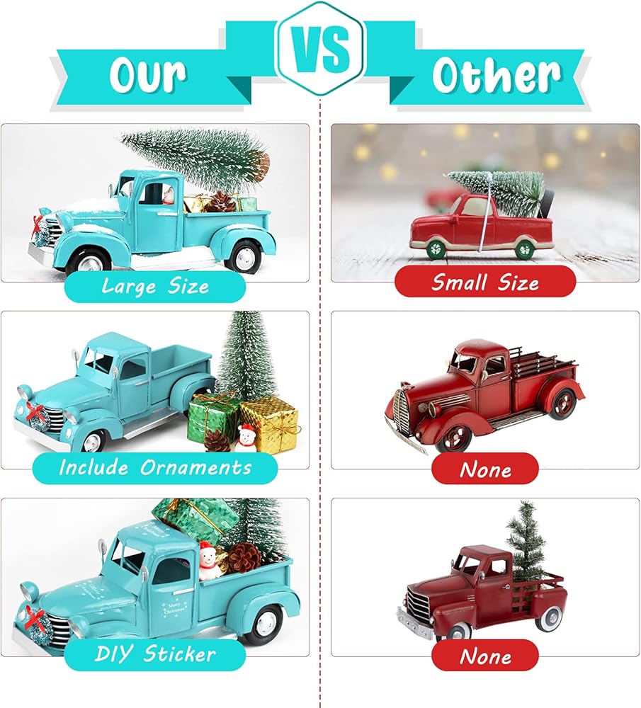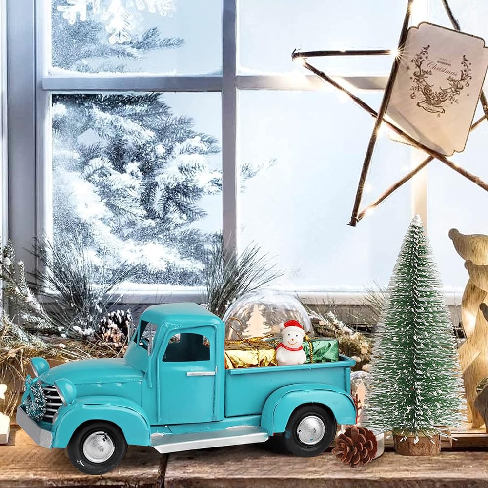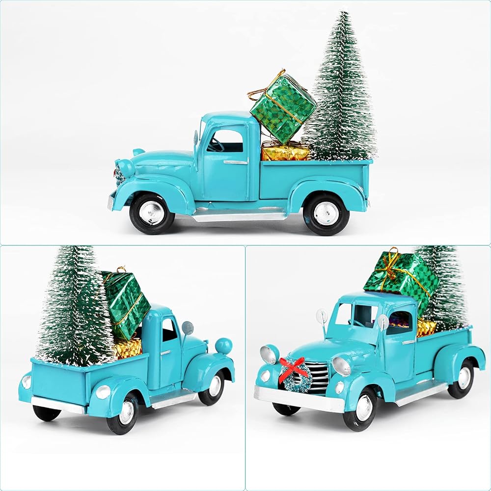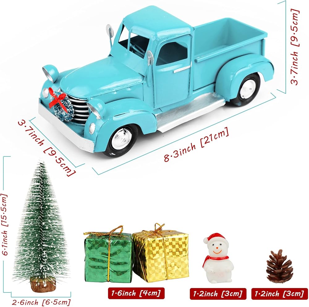 🚗 مادة فاخرة: شاحنة العطلات الكلاسيكية هذه مصنوعة من معدن مصبوب عالي الجودة والبولي إيثيلين. إنه طلاء رش يدوي الصنع، الطلاء الأزرق العتيق لن يسقط، متين للغاية