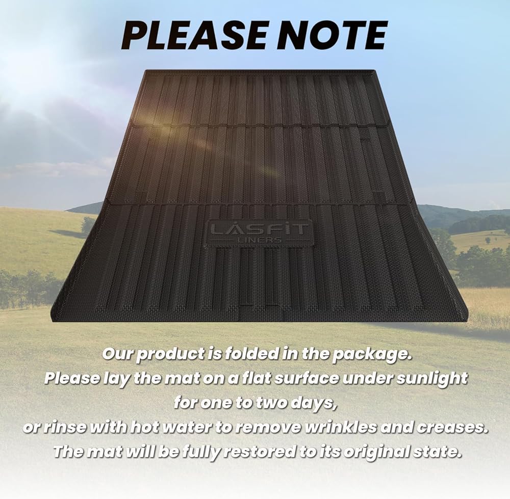 • سهلة التركيب والتنظيف - ضع حصيرة السرير المطوية بالكامل في سرير الشاحنة واتركها في الشمس لمدة يوم واحد. إذا كان الجو غائما، اتركه لمدة يومين. أو يمكنك اختيار شطف مفرش السرير 2024 for Tesla Cybertruck بالماء الساخن لإزالة التجاعيد والثنيات من العبوة المطوية. بمجرد عودة السجادة إلى مكانها، يمكن إزالتها وتنظيفها بسرعة وسهولة عن طريق مسحها بالماء أو شطفها باستخدام بخاخ الماء عالي الضغط.