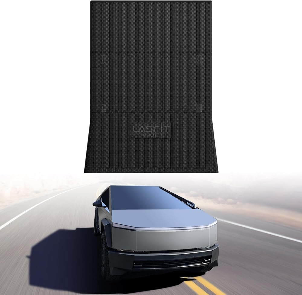 بساط سرير LASFIT لسيارة Tesla Cybertruck 2023 2024 2025 بساط سرير للشاحنة في جميع الأحوال الجوية TPE مناسب حسب الطلب لملحقات Tesla Cybertruck شديدة التحمل ومضادة للانزلاق ومضادة للماء وبطانة سرير بيك اب