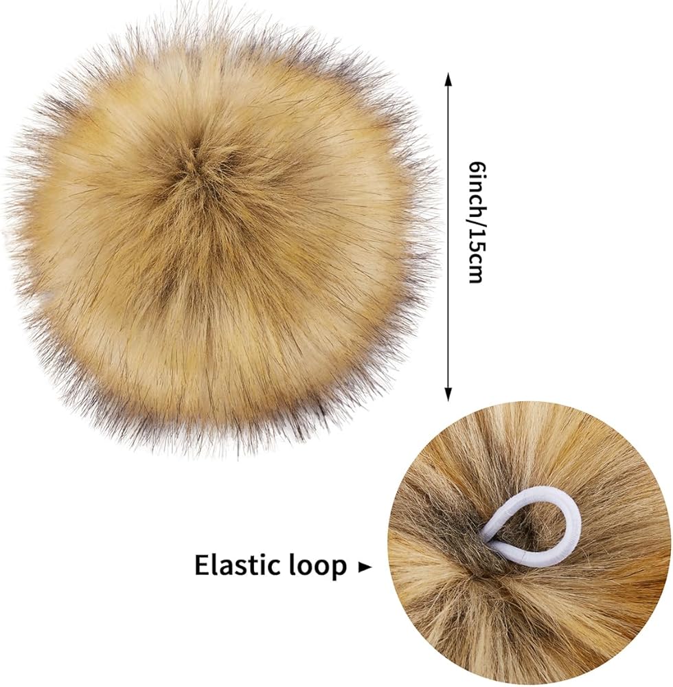 6IN Large Faux Fur Pompoms, 4 Pieces Pom Pom Balls Fluffy Pompom Ball with Elastic Loop for Hats Shoes Scarves Gloves Scarves Bag Key Chain Charms Accessories