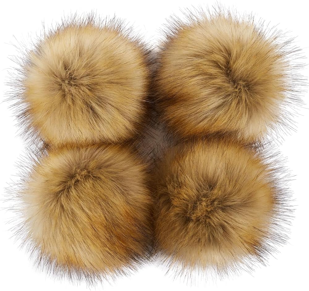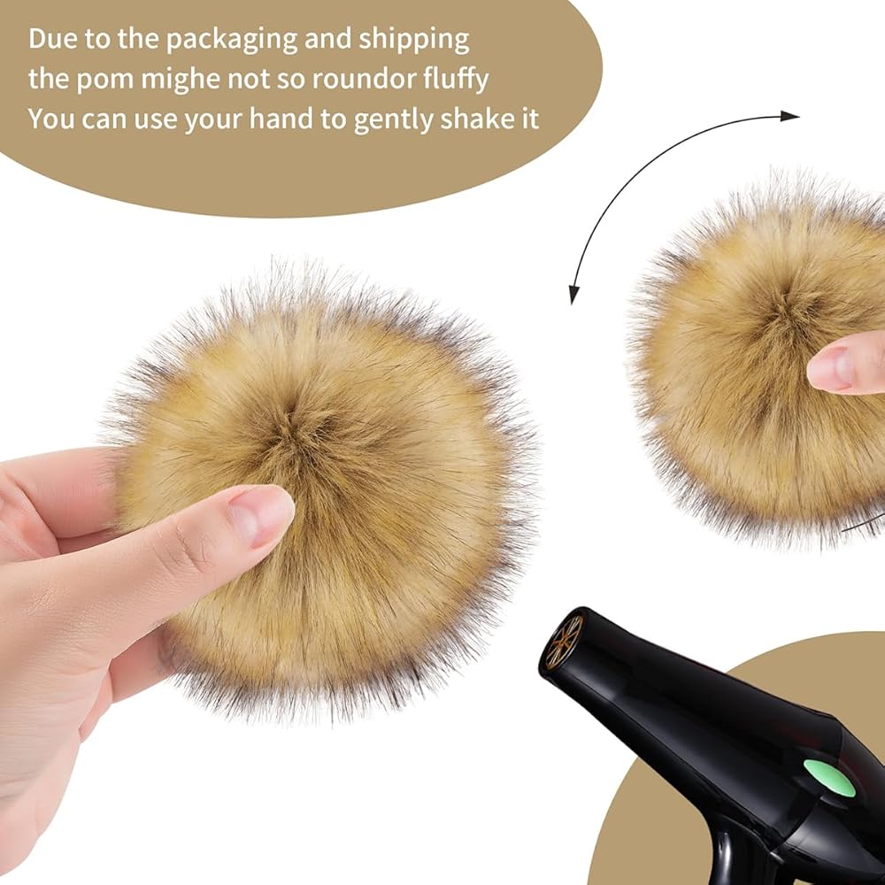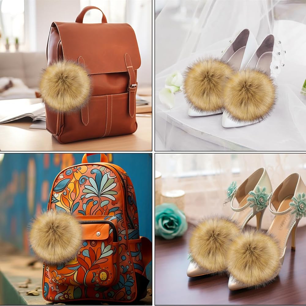 Includes: Contains 4 pieces fashionable faux fur pom pom balls; Perfect for DIY your knitting hat, shoes, bags etc.