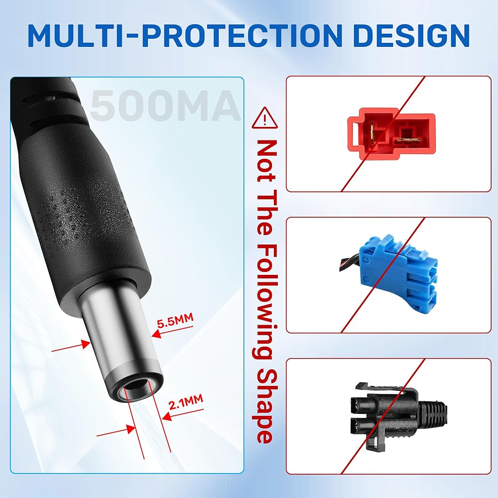 [Warm Tips] This 6V charger comes with 2.1mm*5.5mm center positive barrel plug. Please confirm the shape and size of the vehicle charging port before purchasing this battery charger