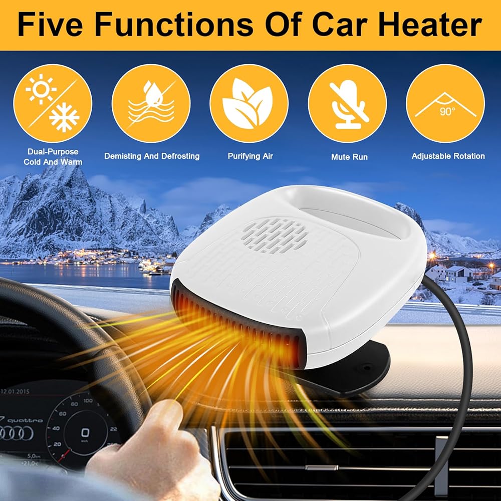 [High Power Fast Heating] Upgraded 12V car heater with a power of 120W, more suitable for car use, increasing the temperature inside the car, defogging and defrosting, and increasing driving safety. It is a good assistant in the car in winter.