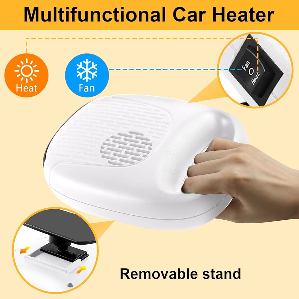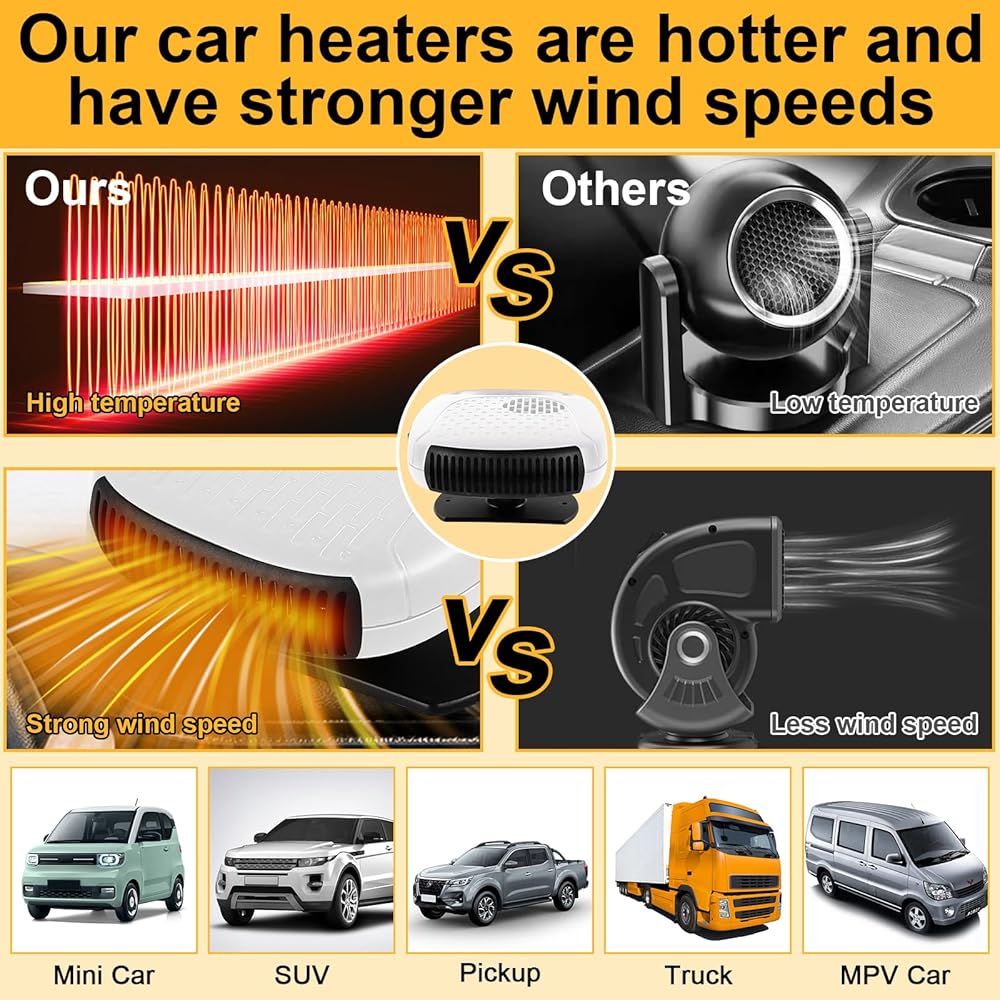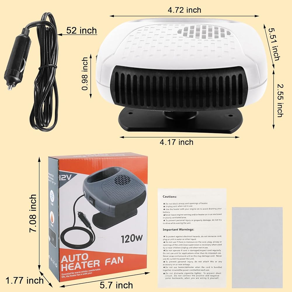 Portable car heater is upgraded in quality and a built-in fuse in the cigarette lighter plug, which automatically cuts off the power when there is a safety hazard, making it safer and more worry-free.