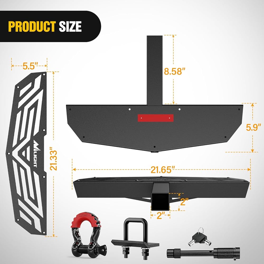 【تصميم سهل الاستخدام】- تم تصميم Nilight Hitch Step بشكل بسيط وفعال: سطحه الخاص غير القابل للانزلاق يبقيك ثابتًا، وهو مغطى بطبقة قوية مقاومة للصدأ. وهذا يعني أنها تظل آمنة للاستخدام وتبدو بمظهر جيد حتى بعد قضاء الكثير من الوقت في الخارج.