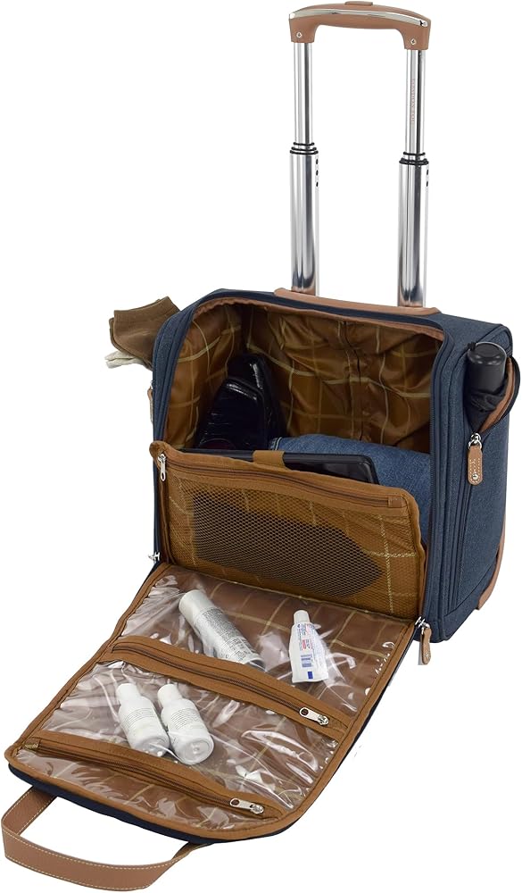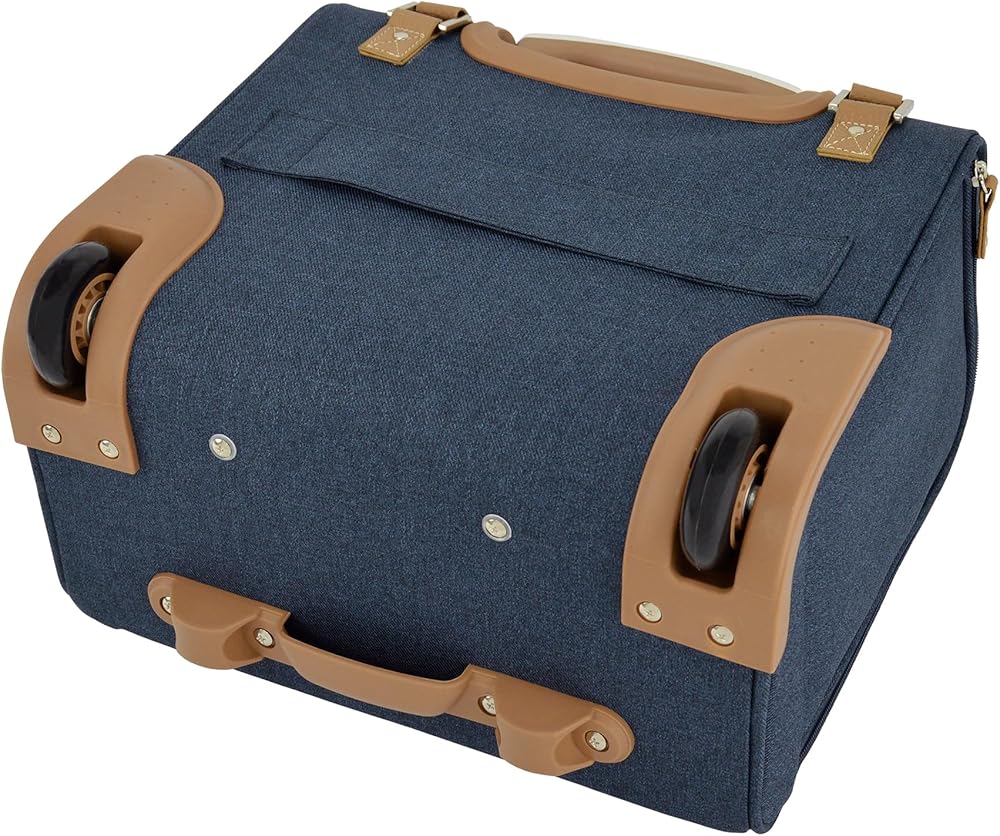 • Low profile 360° multi-directional 8-wheels mounted to grid base for stability, Convenient top, side & bottom carry handles, Full London Fog plaid lining