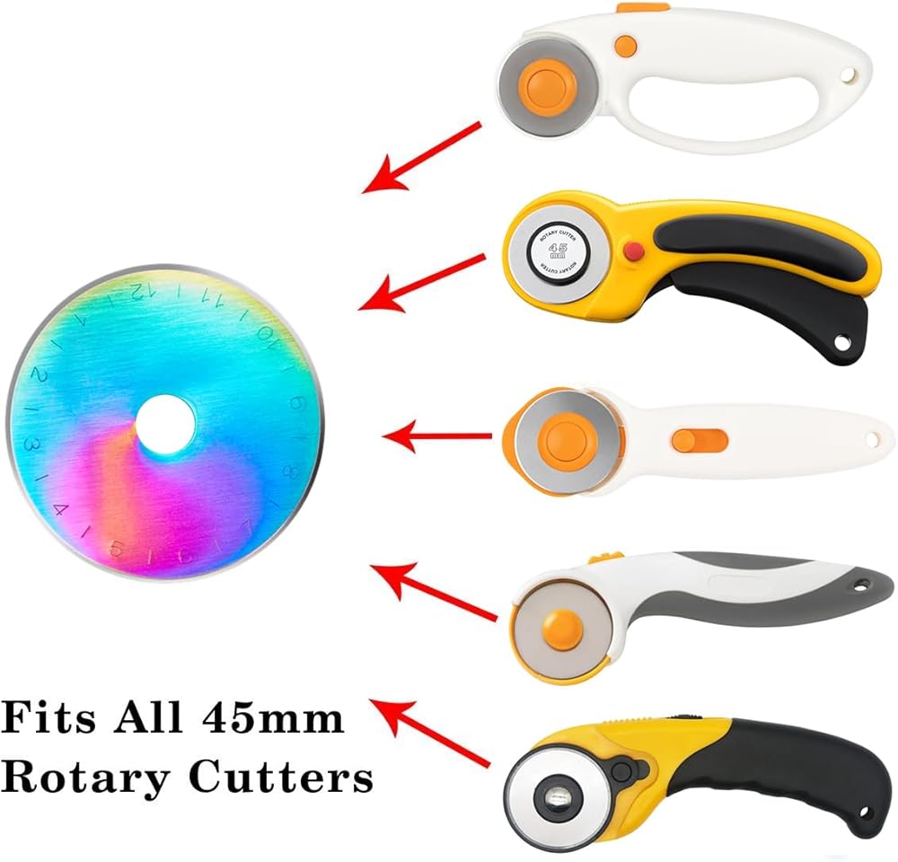أدوات هيدلي 45 مم شفرات قاطعة دوارة 10 عبوات تناسب ألفا وفيسكارس، شفرة دوارة بديلة للخياطة الفنية والحرف اليدوية، قوس قزح
