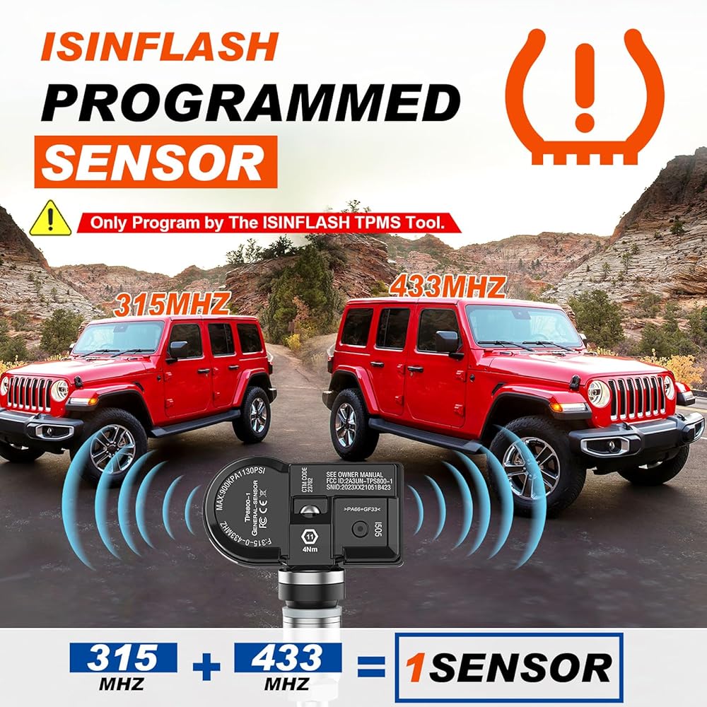 • 【تحذير! تم تصميم مستشعر استبدال TPMS TPS800-1 فقط لأدوات ISINFLASH TPMS. بإمكان ISINFLASH XTP-SP820 برمجة مستشعرات ISINFLASH فقط.
