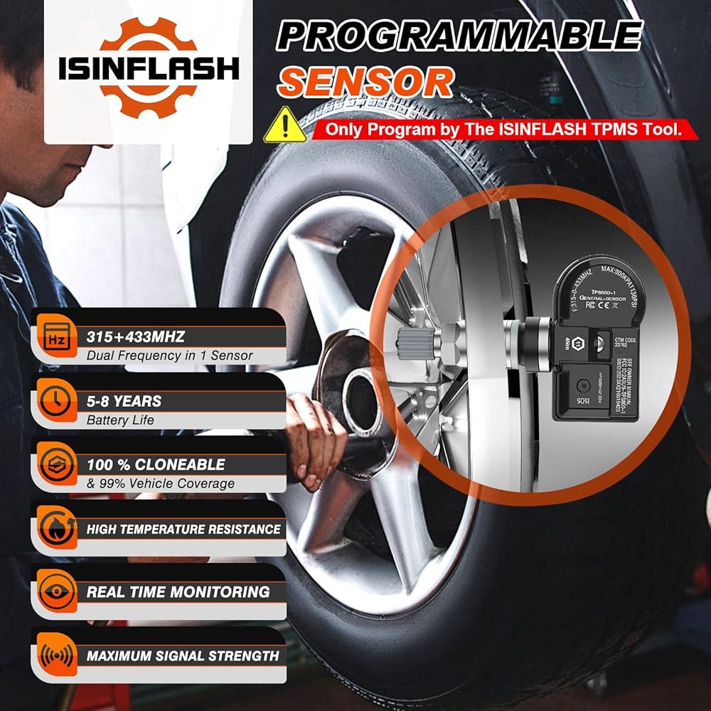 • 【مصمم لأدوات برمجة ISINFLASH Tpms】تم تصميم مستشعر استبدال TPMS TPS800-1 فقط لأدوات ISINFLASH Tpms لتغطية 98% من أجهزة استشعار OEM معًا لحماية سلامة ضغط إطارات السيارة. لا يمكن برمجة أدوات tpms ذات العلامات التجارية الأخرى لهذا المنتج.