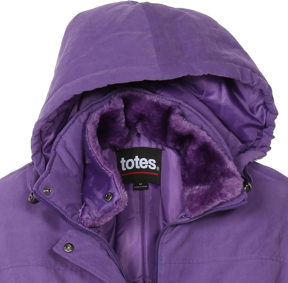 معطف شتوي نسائي من Totes مع غطاء للرأس من الفرو الصناعي، معطف باركا مقاوم للماء، مقاس متوسط