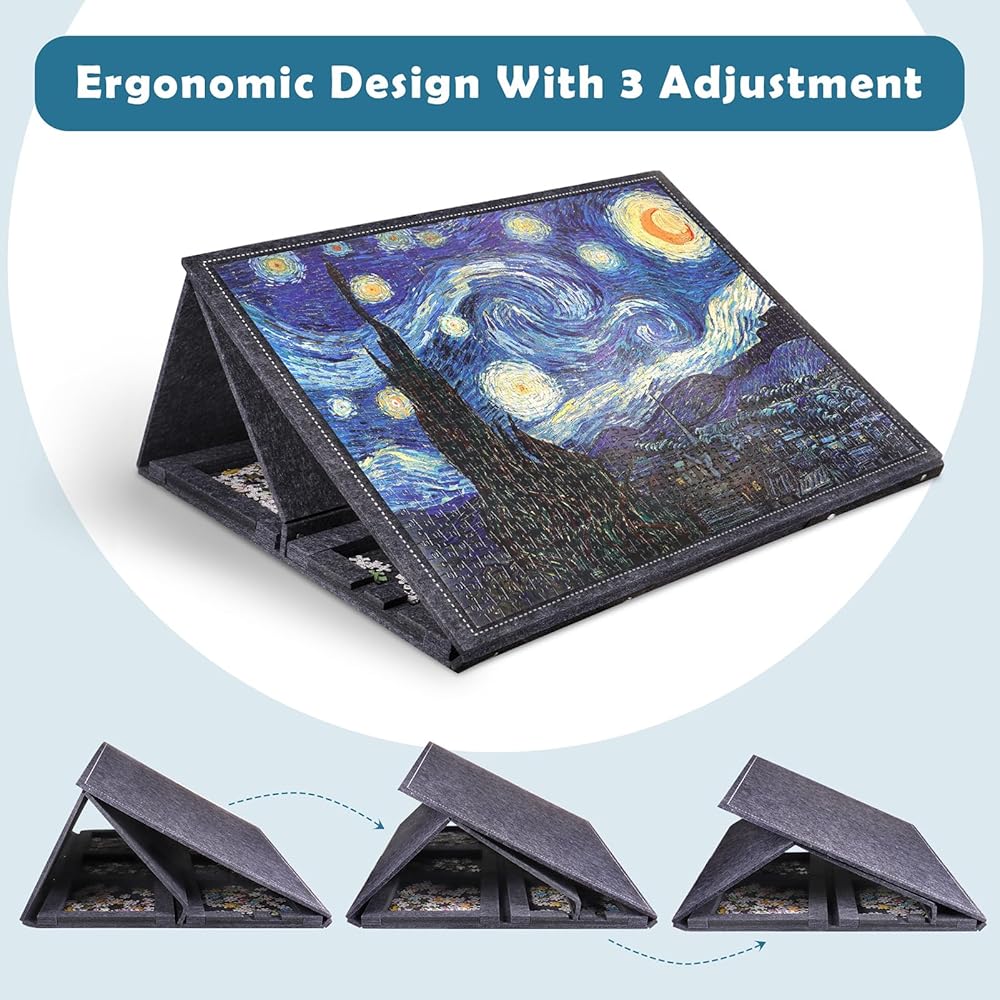 • وظيفة 3 في 1: يمكن استخدام لوحة الألغاز متعددة الاستخدامات هذه كحامل بثلاث زوايا قابلة للتعديل، أو سطح مستو مع إرشادات مطبوعة لتجميع الألغاز المنظمة، أو كغطاء واقٍ لحماية أحجيتك من الغبار والحيوانات الأليفة.