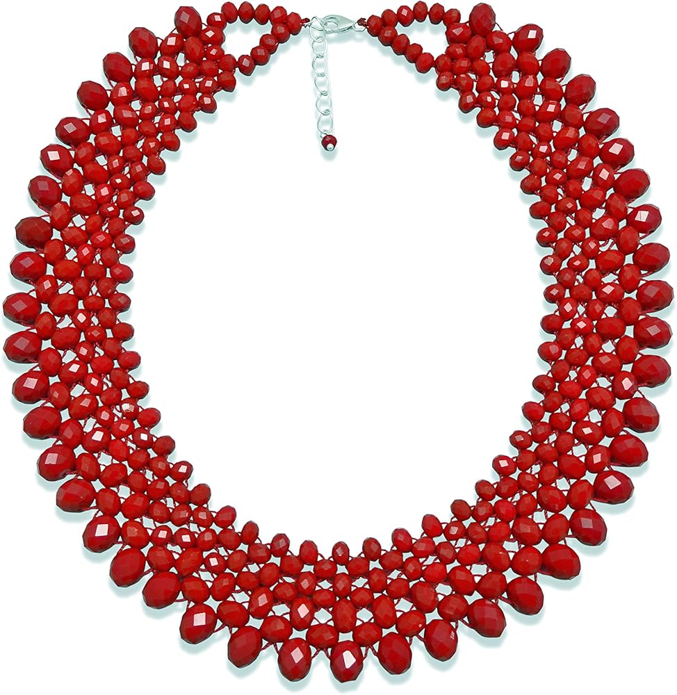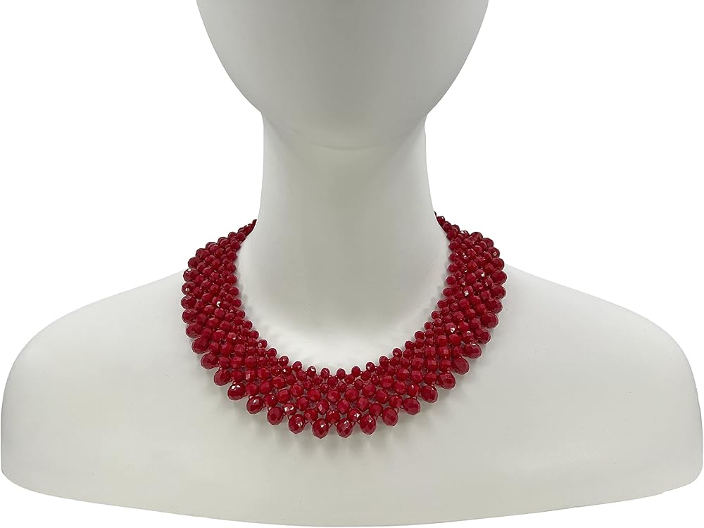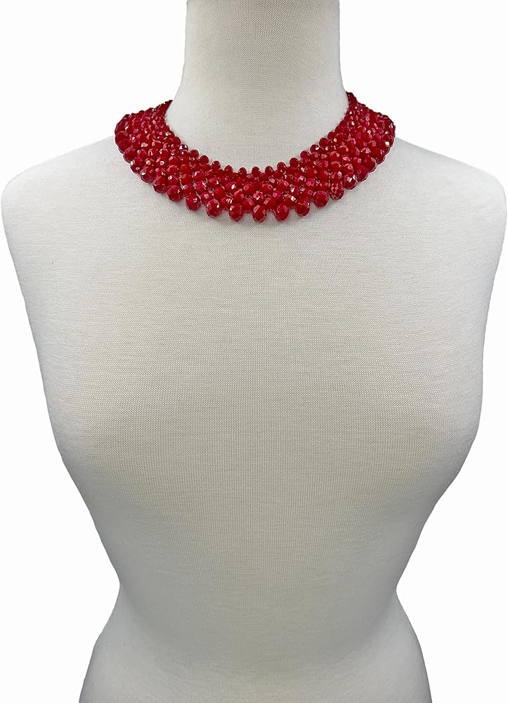 A Unique and an elegant beaded garnet red crystal bib choker necklace.This necklace is made with great quality crystal beads. With an excellent workmanship, this necklace will sure last. Its weight is about 120 grams.