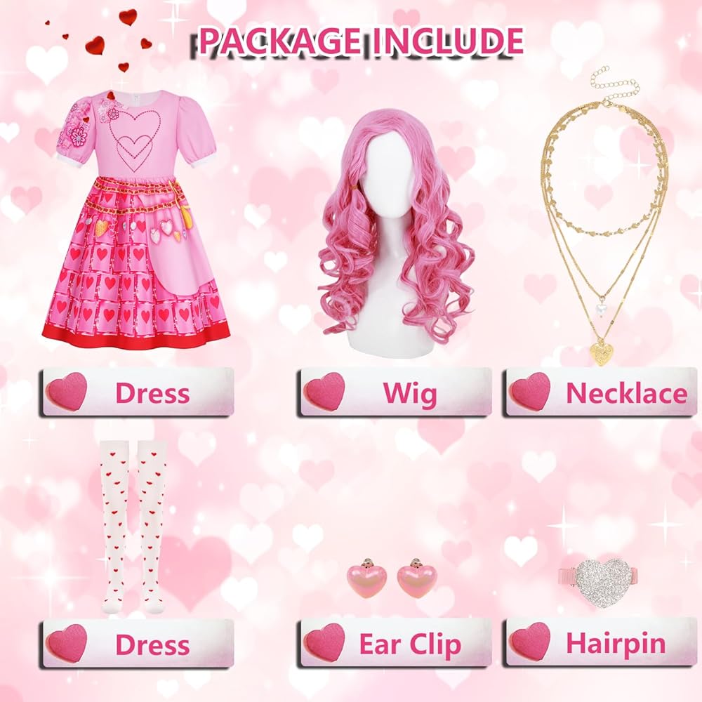 تم تصميم مجموعة فستان قلوب الأميرة للفتيات من شخصيات الأفلام، مع شعر مستعار وردي مموج ناعم يمكن أن يجعل أطفالك يبدون مثل شخصيات الأفلام.