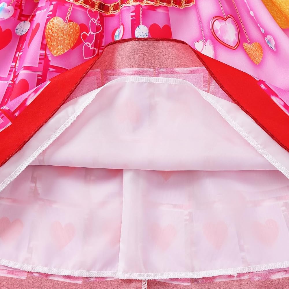 فستان Princess Hearts مصنوع من ألياف عالية الجودة، ناعم ومسامي، مريح ومتين؛ الباروكة مصنوعة من ألياف مقاومة للحرارة، ناعمة ومسامية