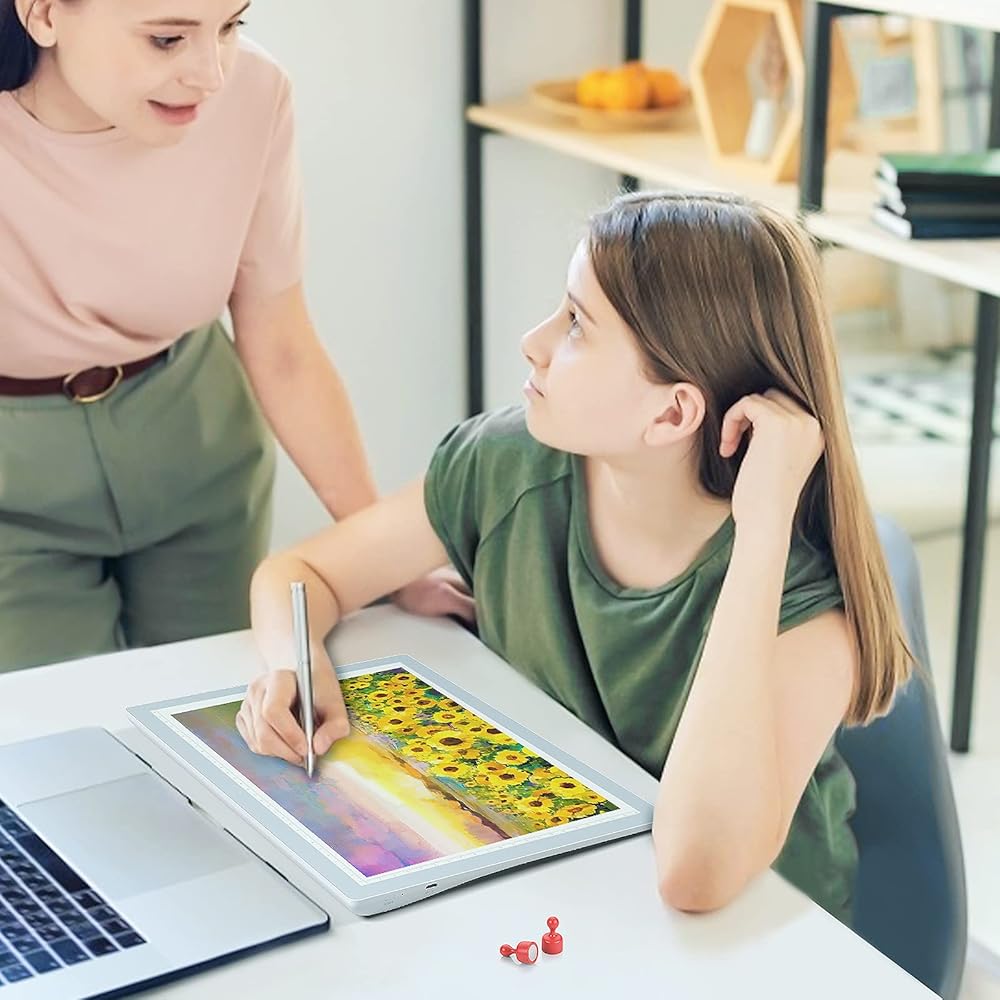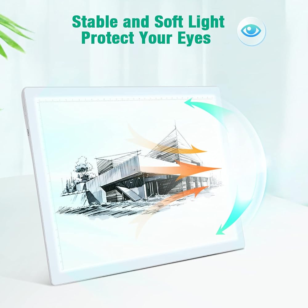 مغناطيسات ثابتة وزاوية إمالة: يتوفر لك دبابيس مغناطيسية لحمل الورقة على سطح صندوق الضوء ومنعها من الحركة. الجانب الخلفي من لوحة النسخ يميل بمقدار 8 درجات وهو مريح ويجعلك تشعر بالنعومة أثناء الرسم لفترة طويلة.