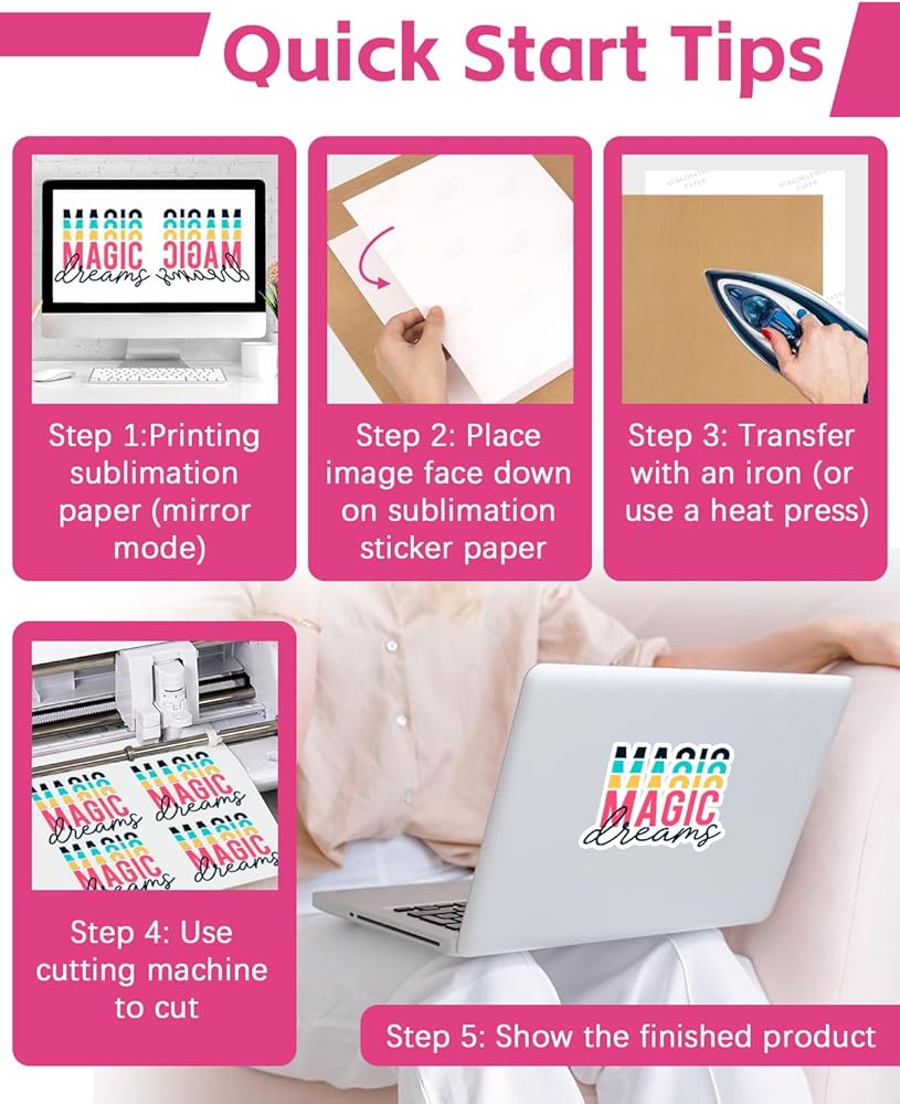 This is a pack of 40 sheets of premium white glossy printing paper measuring 8.5x11 inches. These printing papers have excellent printing capabilities and are used with sublimation paper and thermal sublimation inkjet printers and sublimation inks. Whether it's a creative project, craft or professional design, these papers are the perfect choice. Gifts for coming holidays: Valentine's Day, Mother's Day, Father's Day, Halloween, Christmas.